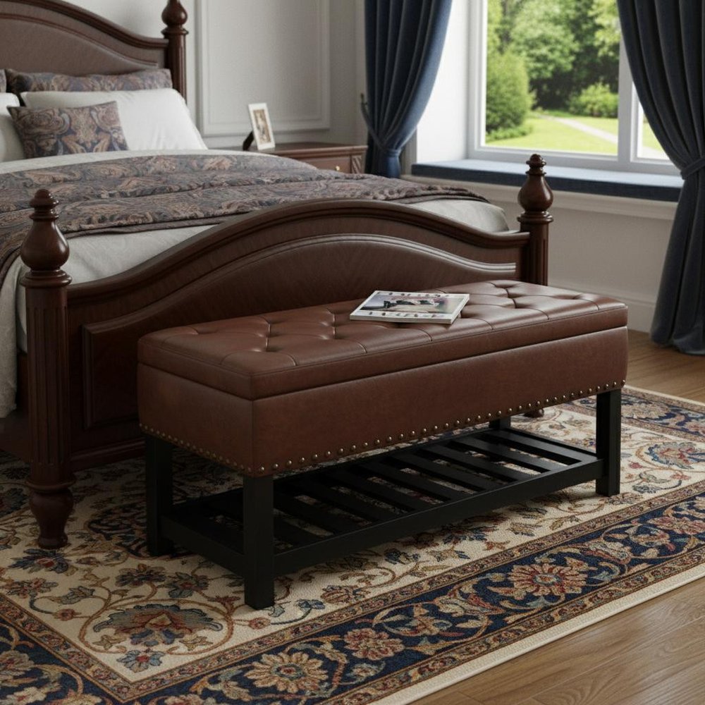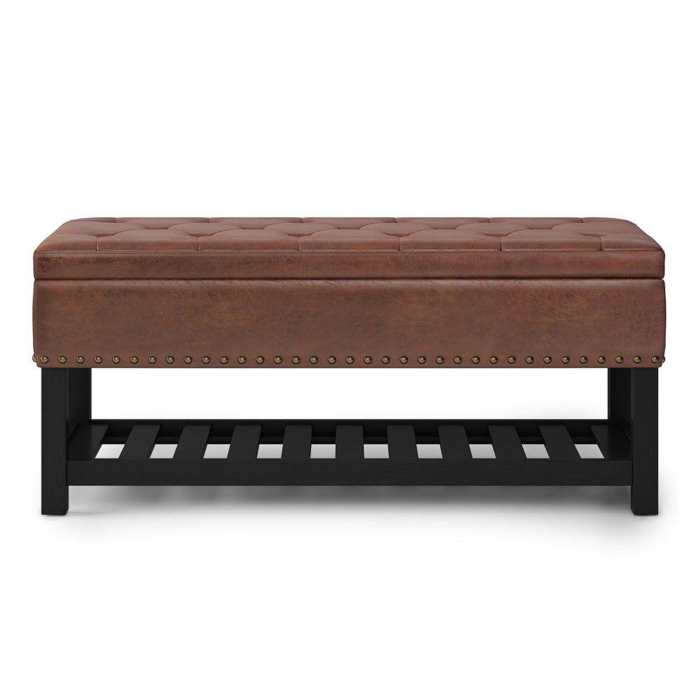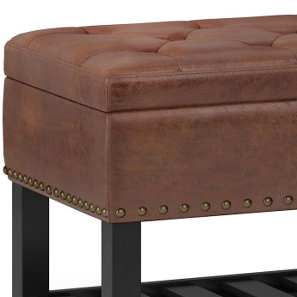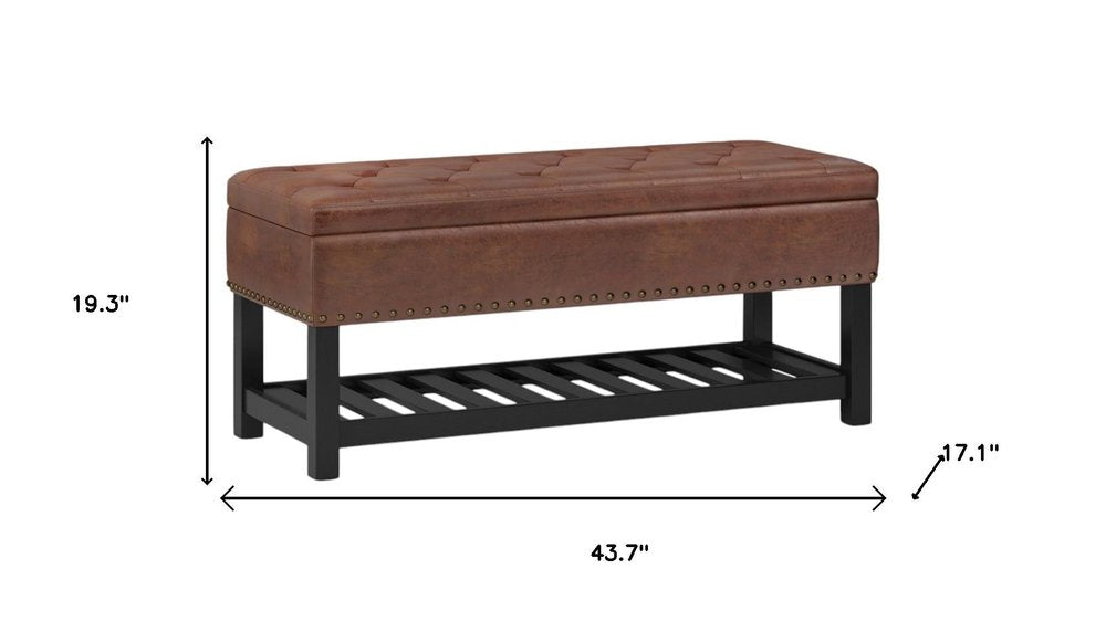 44" Brown and Espresso Leather Ottoman With Storage