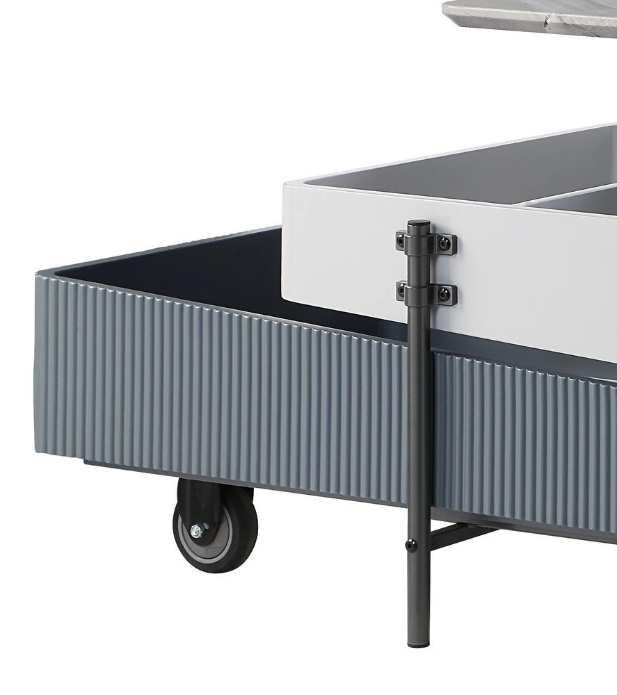 47" Gray White and Black Faux Marble Wood and Steel Lift Top Coffee Table