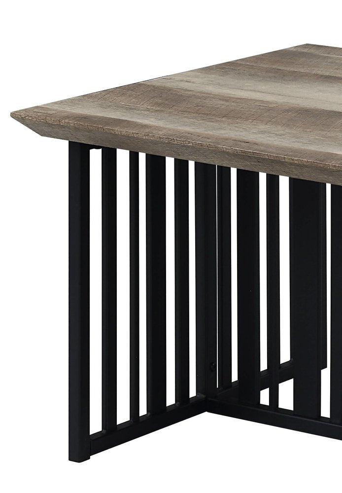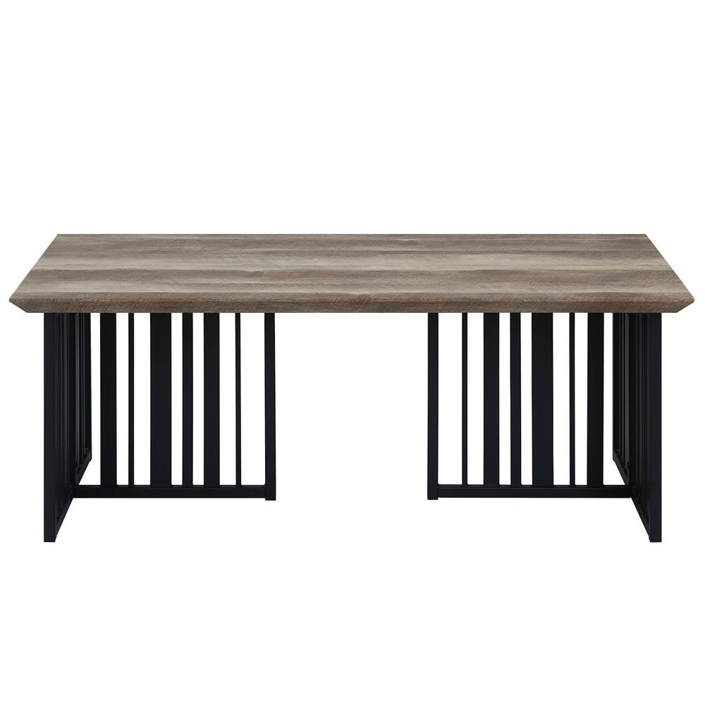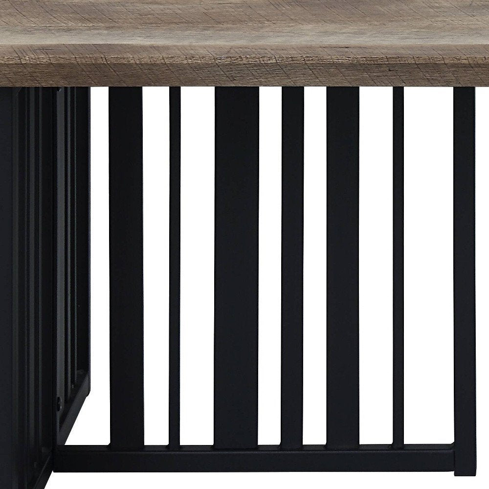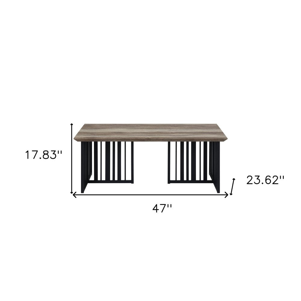 47" Oak and Black Wood And Metal Distressed Frame Coffee Table
