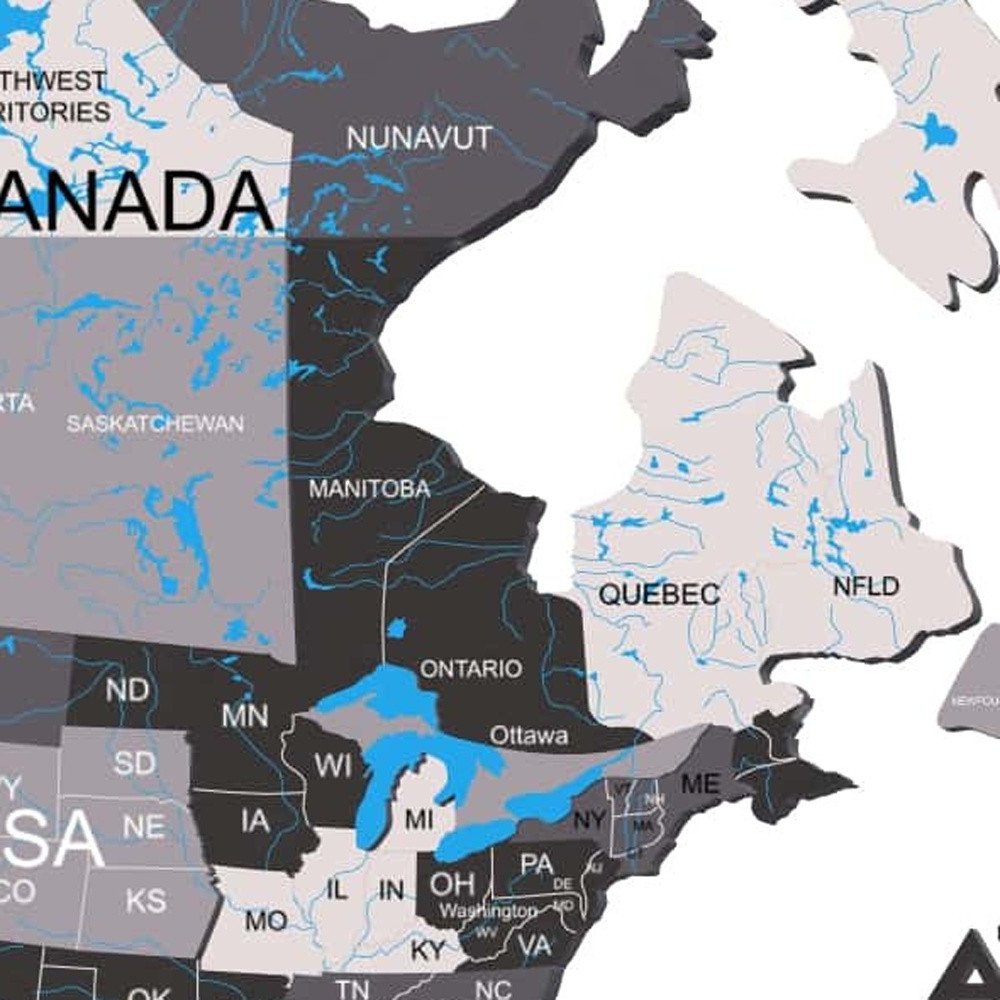 The 47-inch x 79-inch black gray and white wood hanging dimensional world map sculpture wall decor is the perfect decorative... Read more
