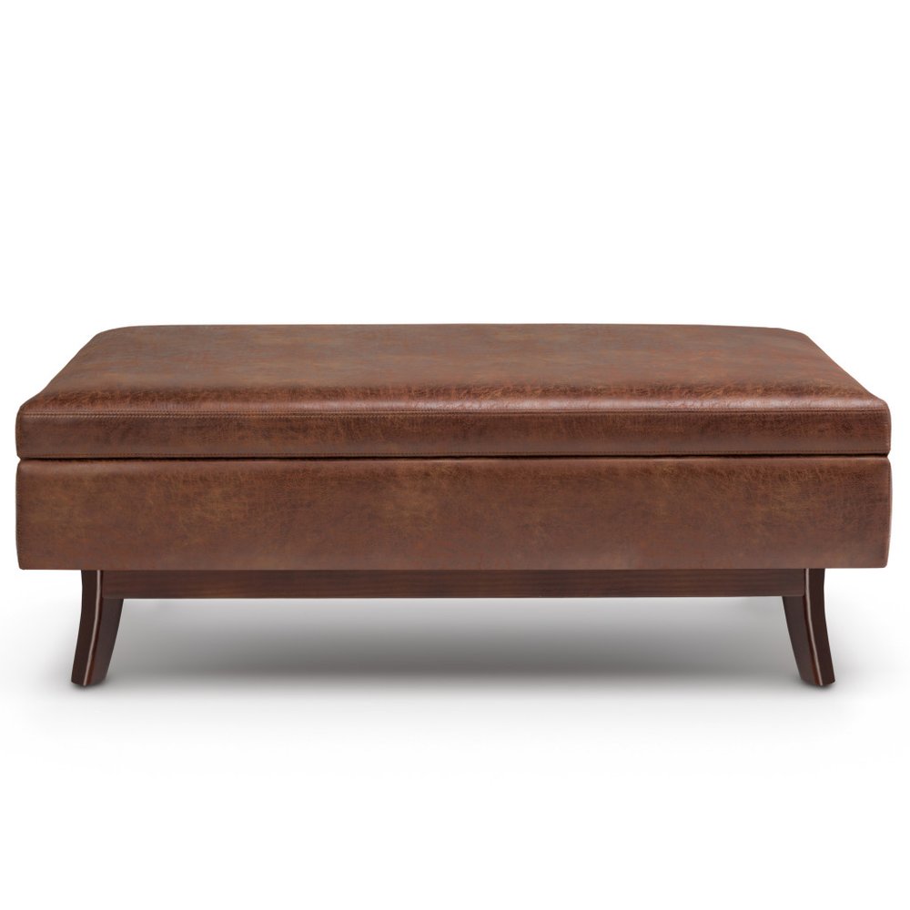 Practicality and fashion mix together with this handy 48-inch brown leather cocktail ottoman with storage. This chic cocktail ottoman is... Read more