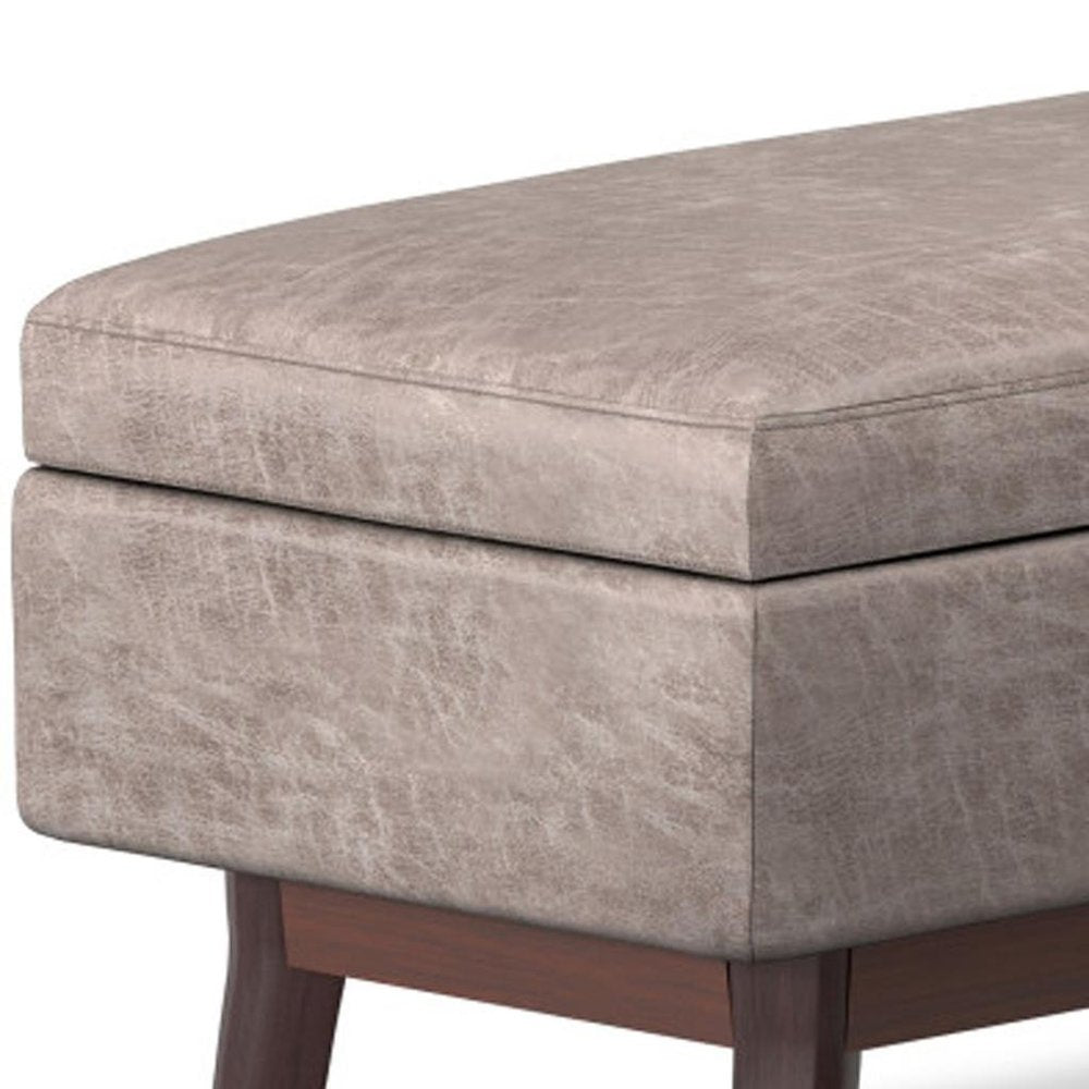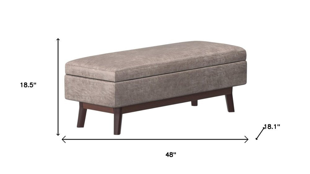 48" Gray and Brown Leather Cocktail Ottoman With Storage