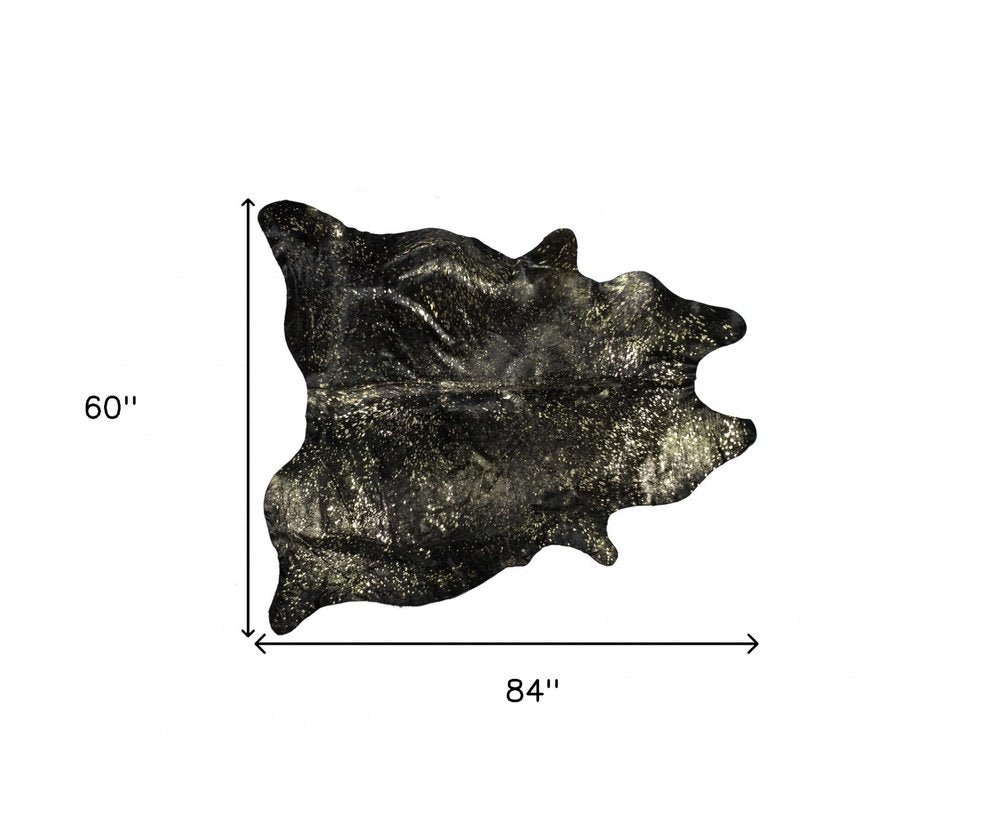 5' X 7' Black And Gold Cowhide Cowhide Print Area Rug