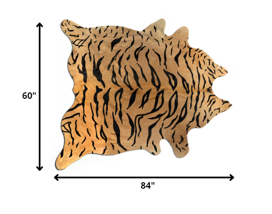 5' X 7' Black And Orange Cowhide Area Rug
