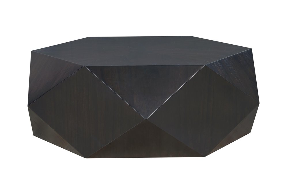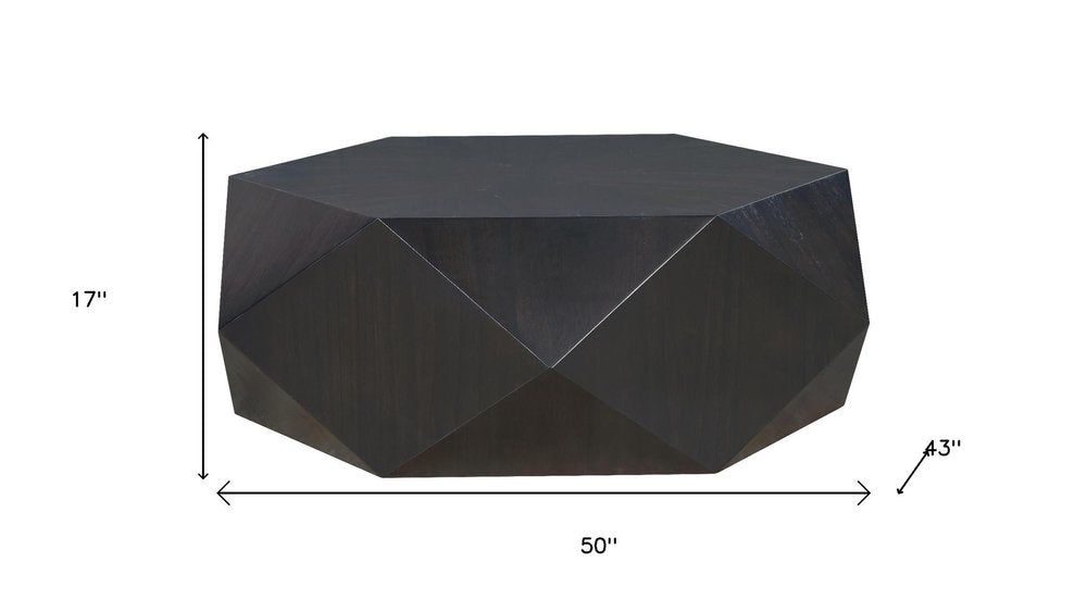 50" Black Wood Hexagon Block Coffee Table