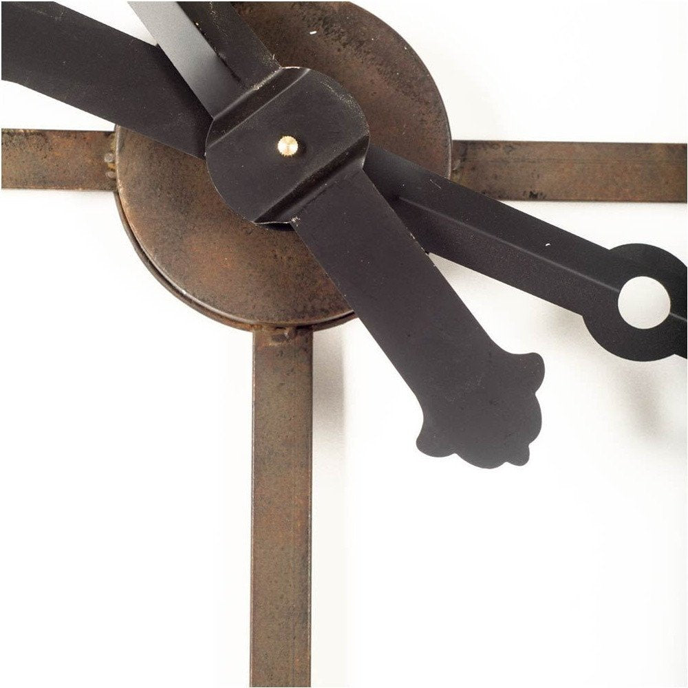 Finished In An Antiqued-Brass Tone, Is A Stunning Industrial-Inspired, Oversized Iron Wall Clock That Flaunts An Open Back Face With... Read more