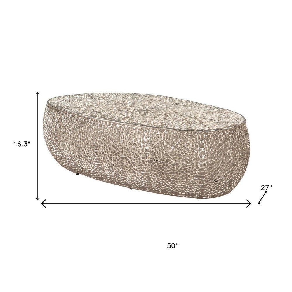 50" Silver Aluminum Oval Pedestal Coffee Table