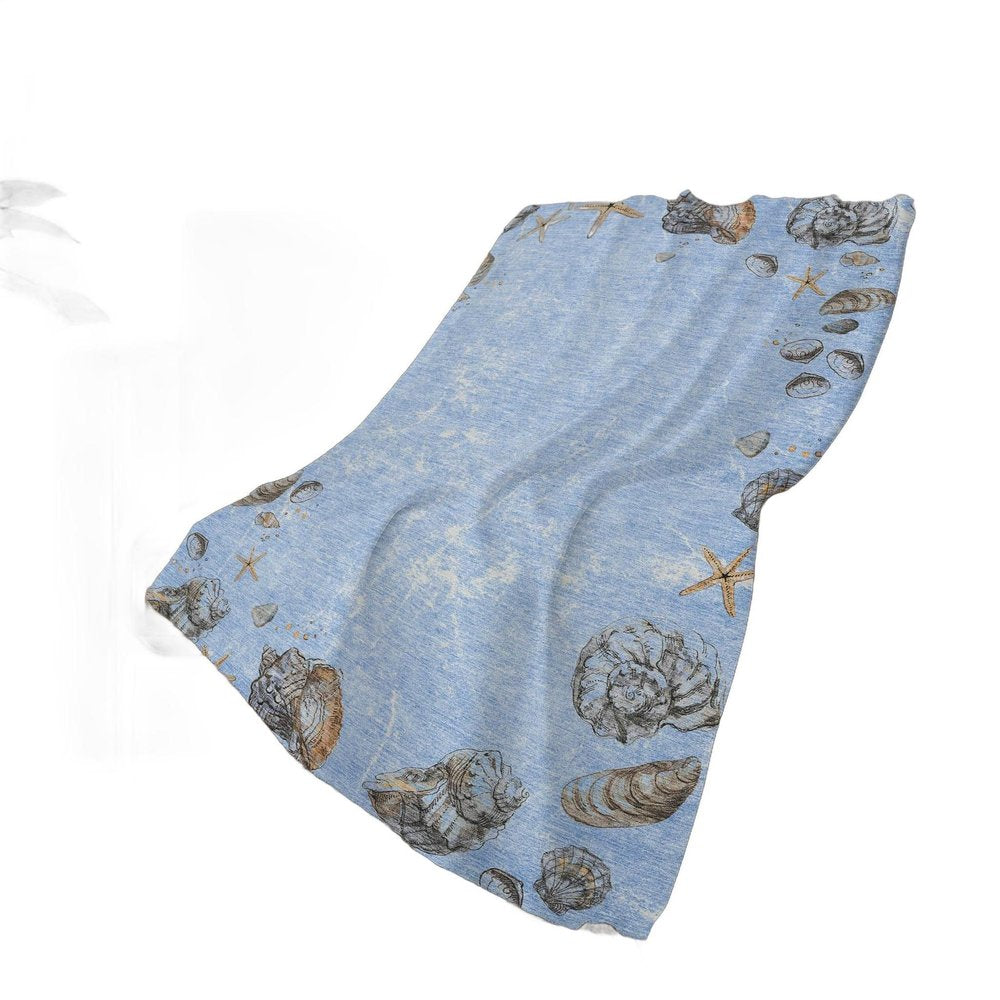 50" X 70" Blue Beige And Chocolate Animal Print Polyester Woven Plush Throw Blanket