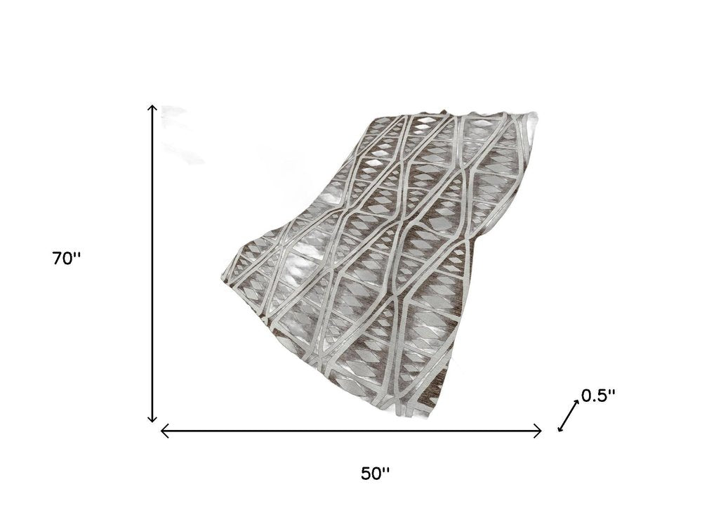 50" X 70" Brown And Ivory Geometric Polyester Woven Plush Throw Blanket