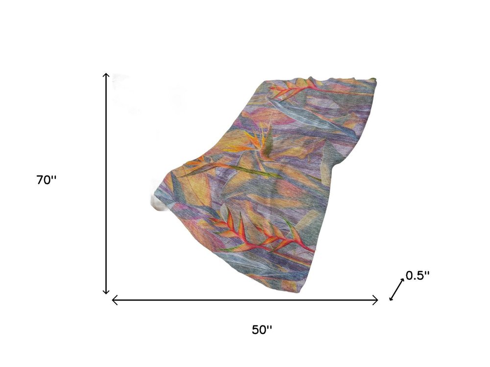 50" X 70" Peach Blue And Orange Animal Print Polyester Woven Plush Throw Blanket