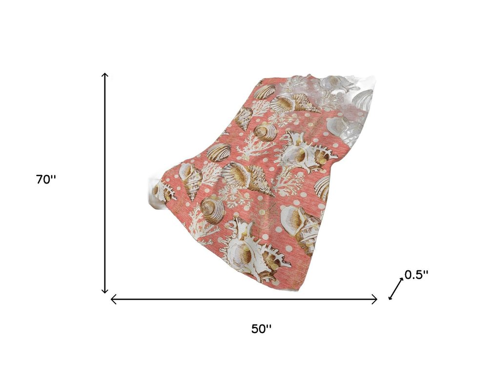 50" X 70" Peach Ivory And Brown Animal Print Polyester Woven Plush Throw Blanket