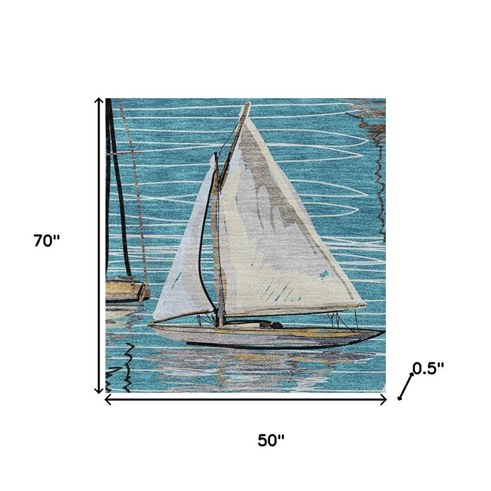 50" X 70" Teal Ivory And Beige Geometric Polyester Woven Plush Throw Blanket