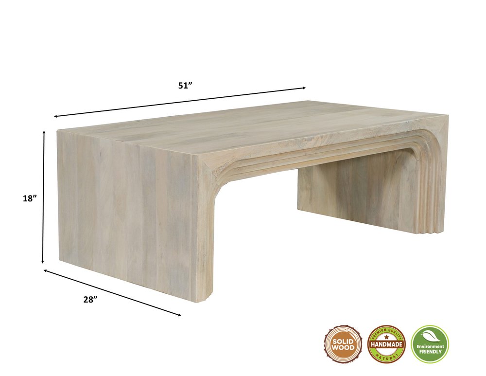 51" White Solid Wood Double Pedestal Coffee Table