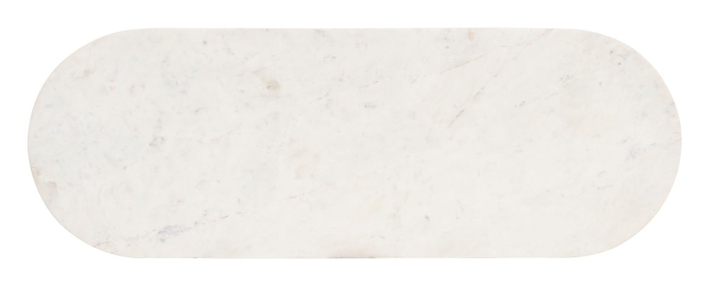 52" White and Black Genuine Marble and Solid Wood Oval Double Pedestal Console Table
