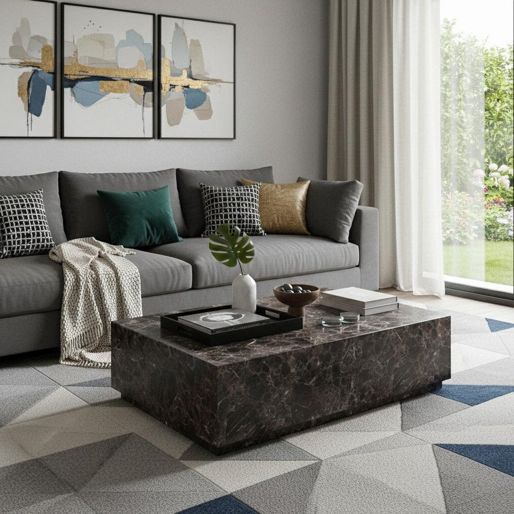 Add handsome, fashionable design to your living space with this 55-inch brown genuine marble block coffee table. A brown coloration... Read more