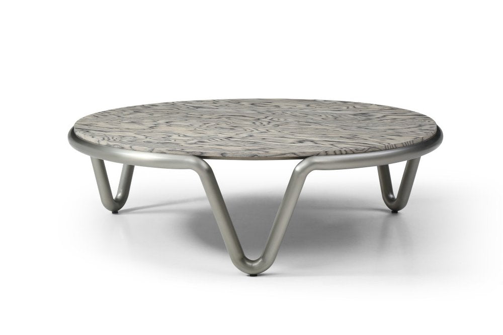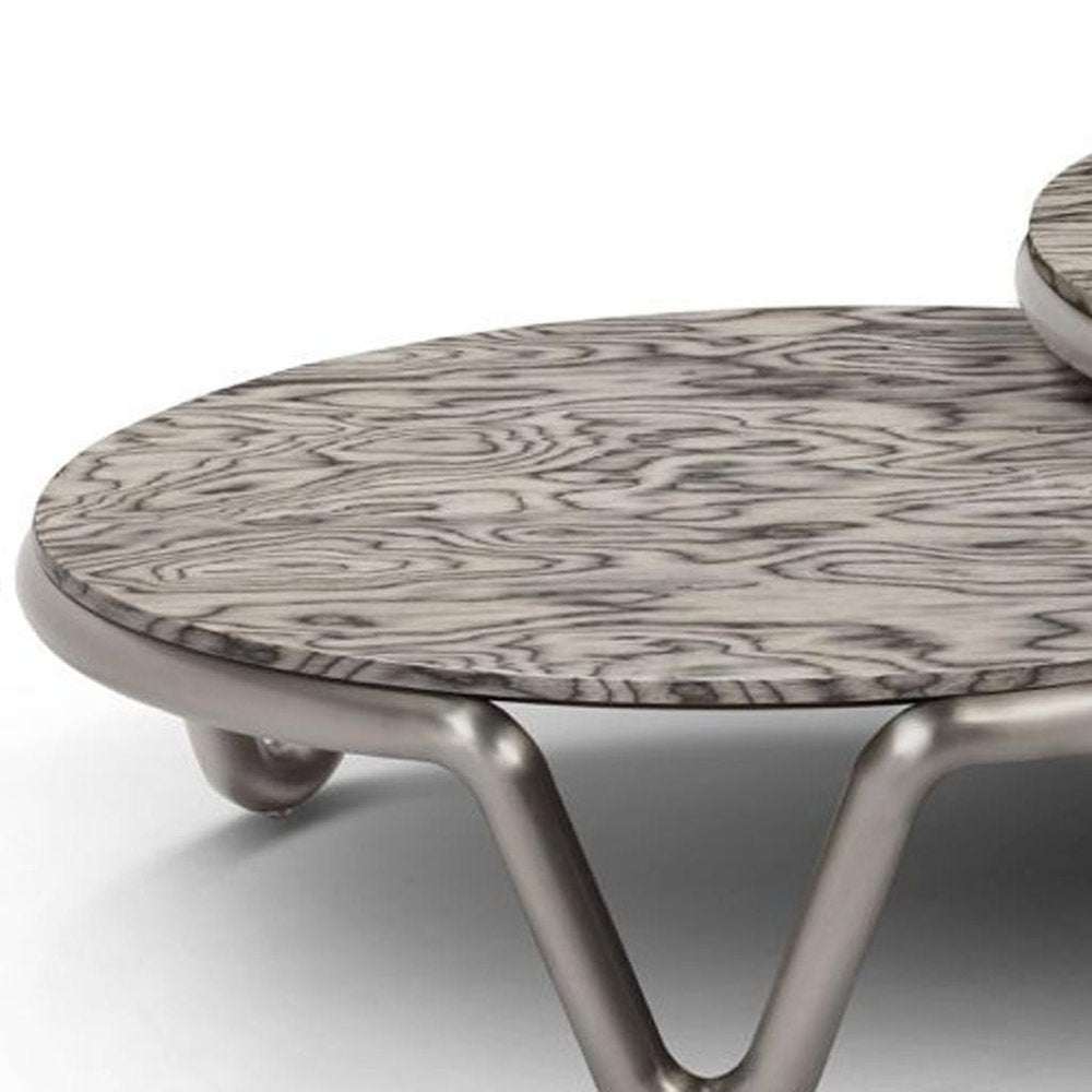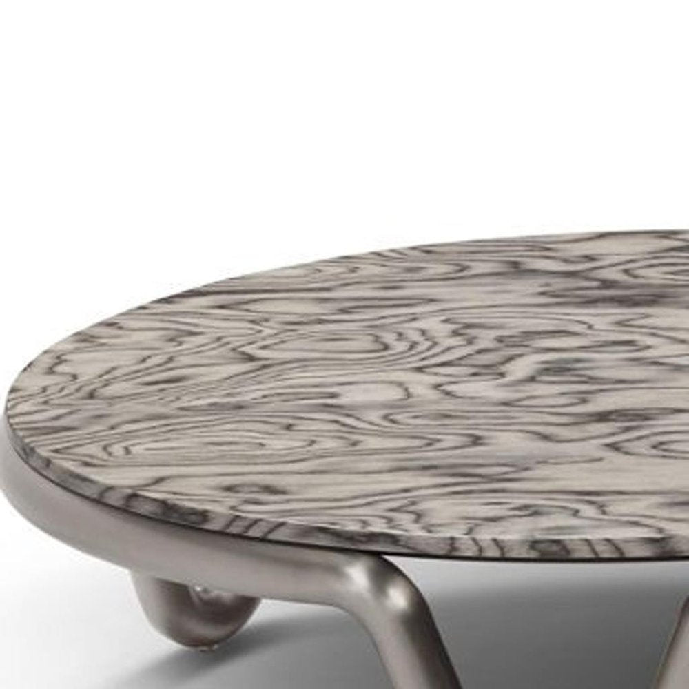 55" Gray and Silver Wood and Stainless Steel Round Coffee Table