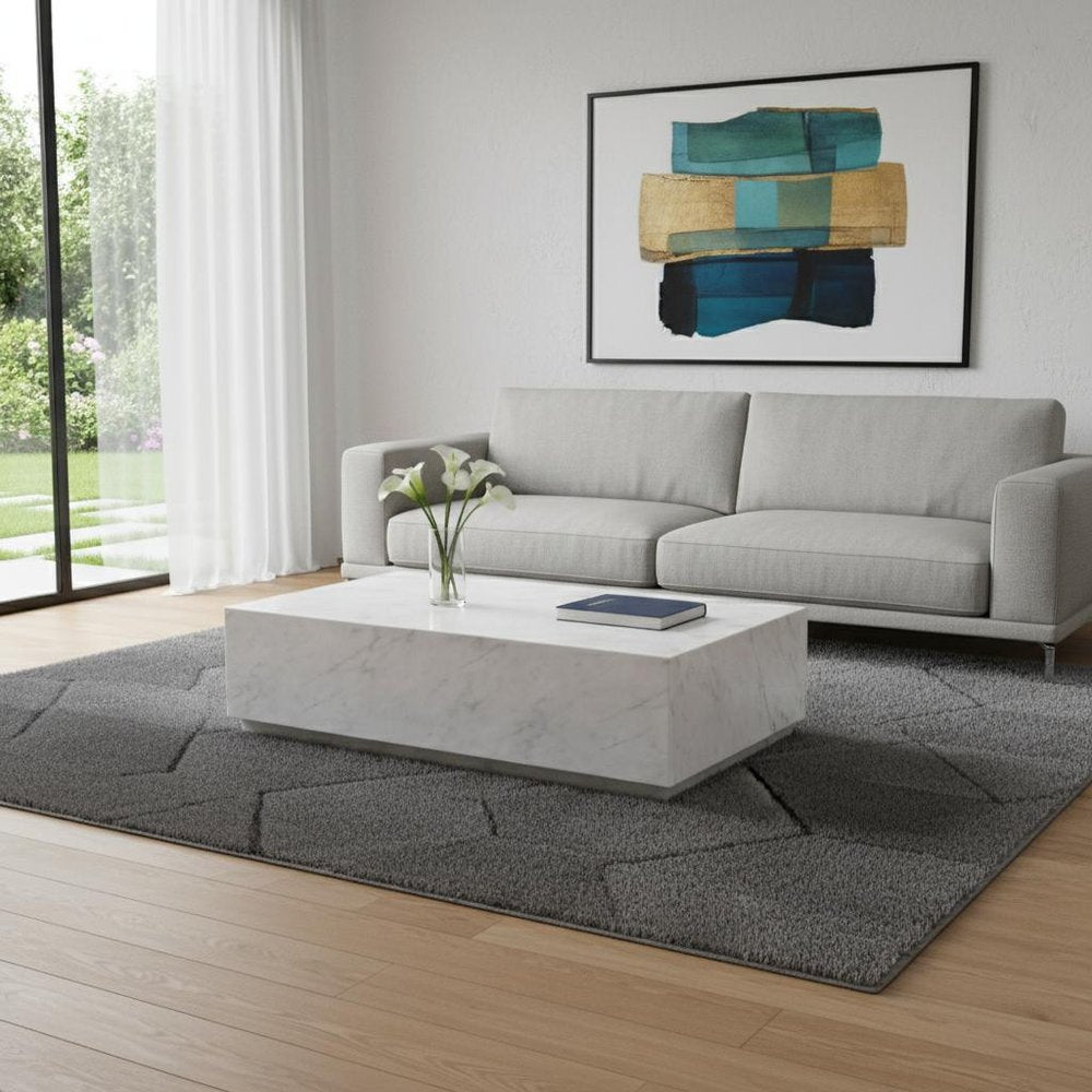 55" White Genuine Marble and Marble Pedestal Coffee Table