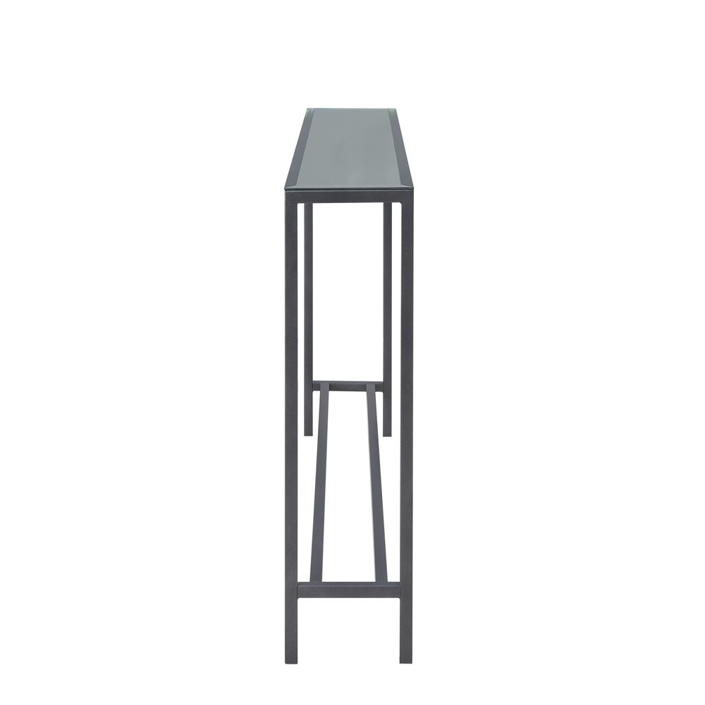 56" Silver and Gunmetal Mirrored Glass Console Table