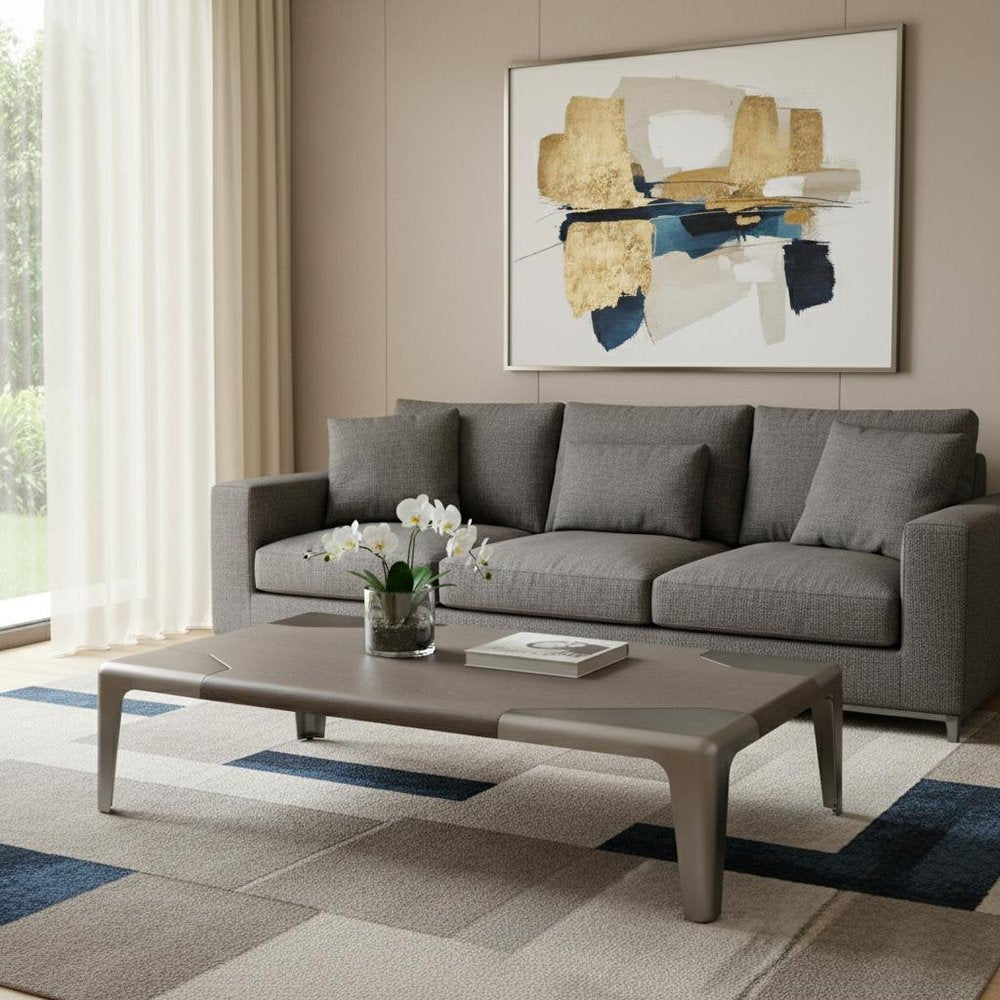 57" Gray and Silver Wood and Stainless Steel Coffee Table