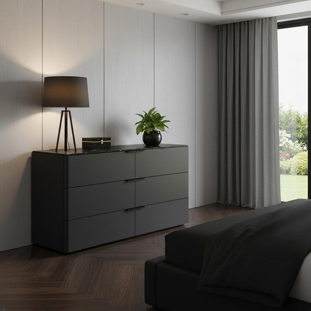Add personality to your bedroom style and a feeling of coziness with this 57-inch gray wood six drawer double dresser.... Read more