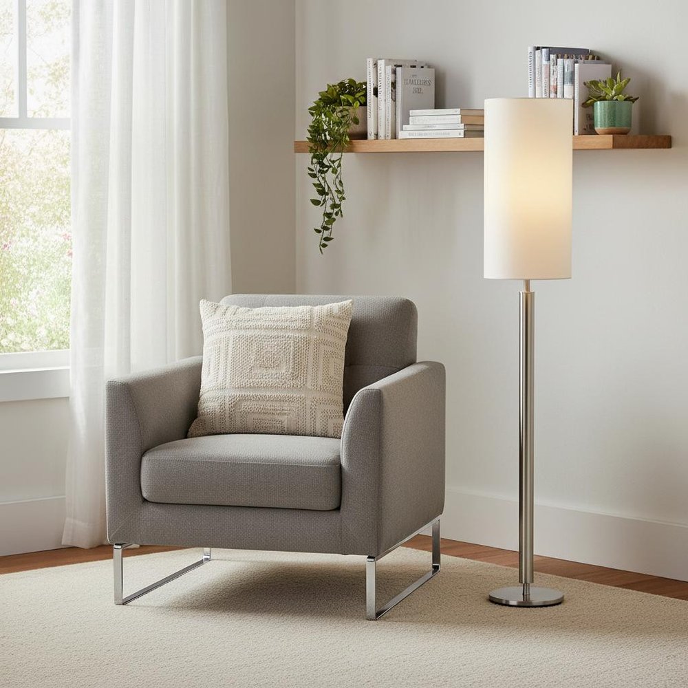 Bring of level of elegance and charm to your space with this good looking 58-inch silver floor lamp with white... Read more