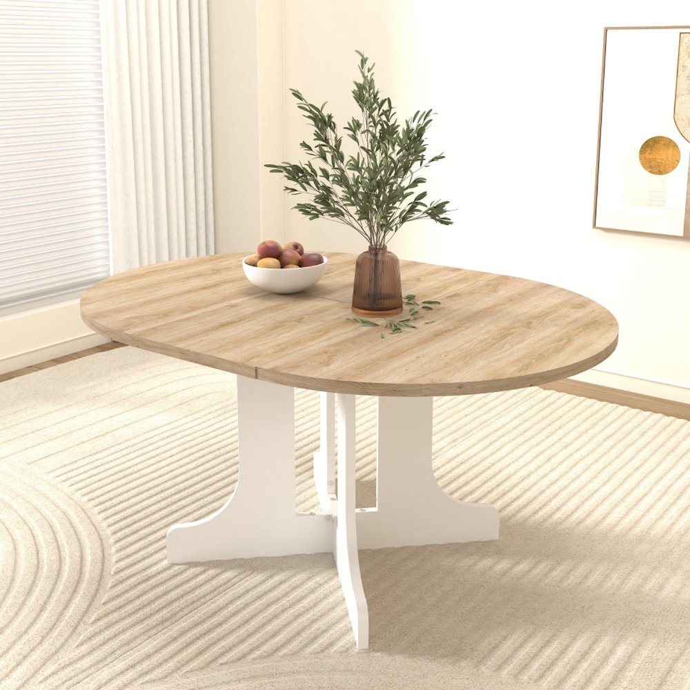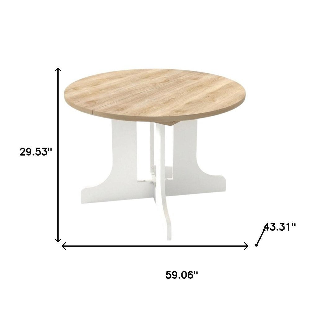 59" Brown and White Wood Oval Cross Legs Coffee Table
