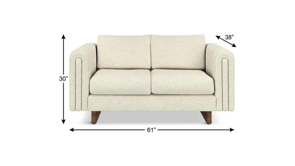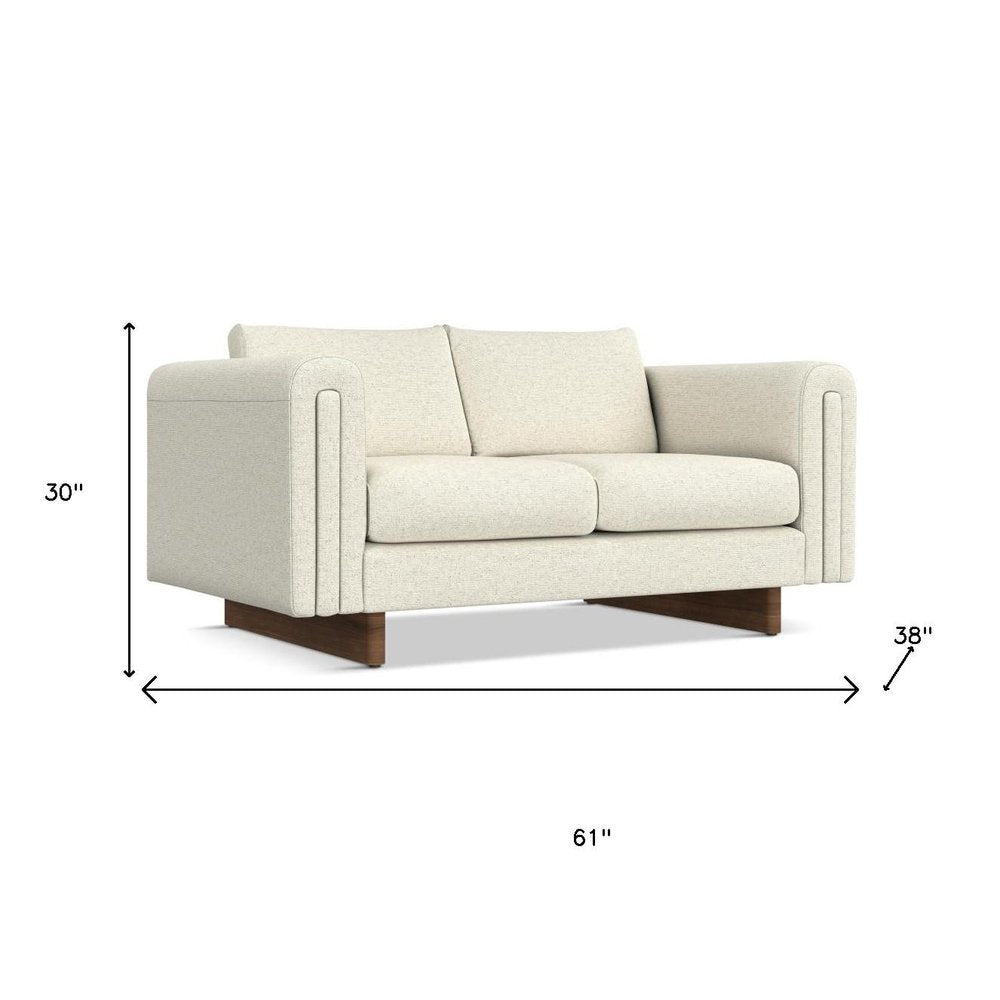 61" Ivory Fabric Sofa With Walnut Legs