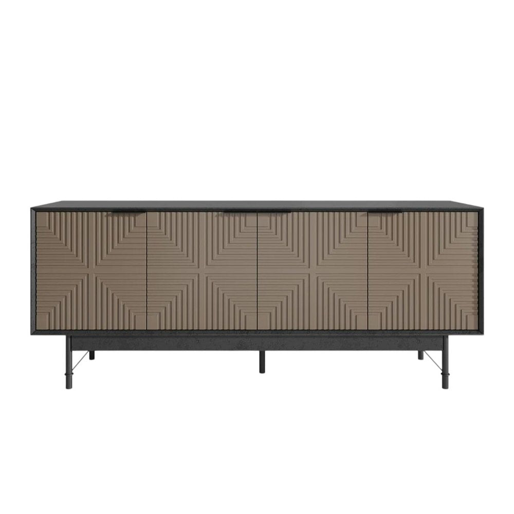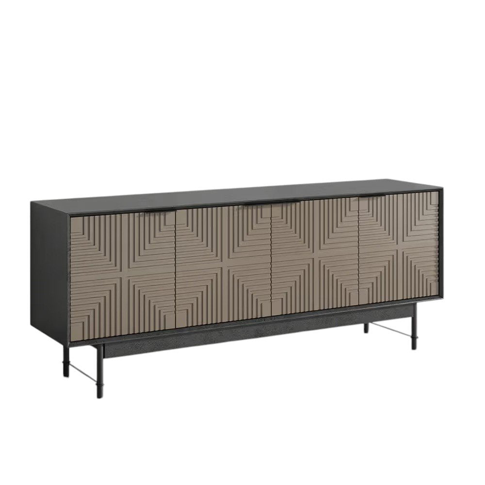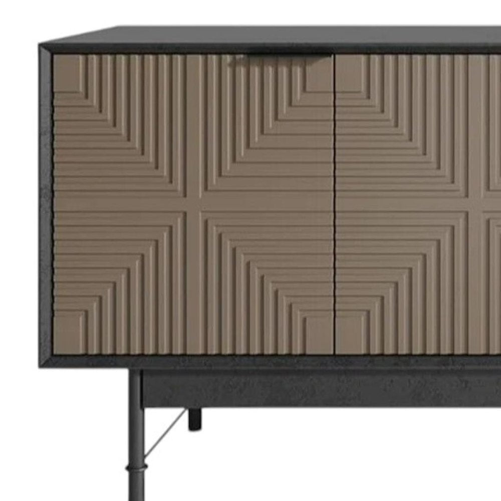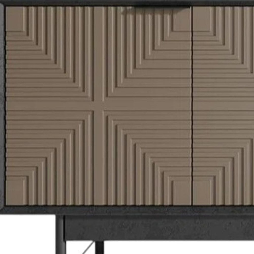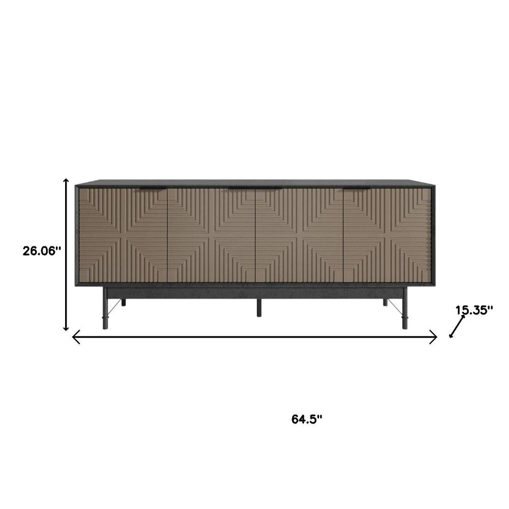 65" Beige And Black Wood Carved Geo Texture Enclosed Storage TV Stand