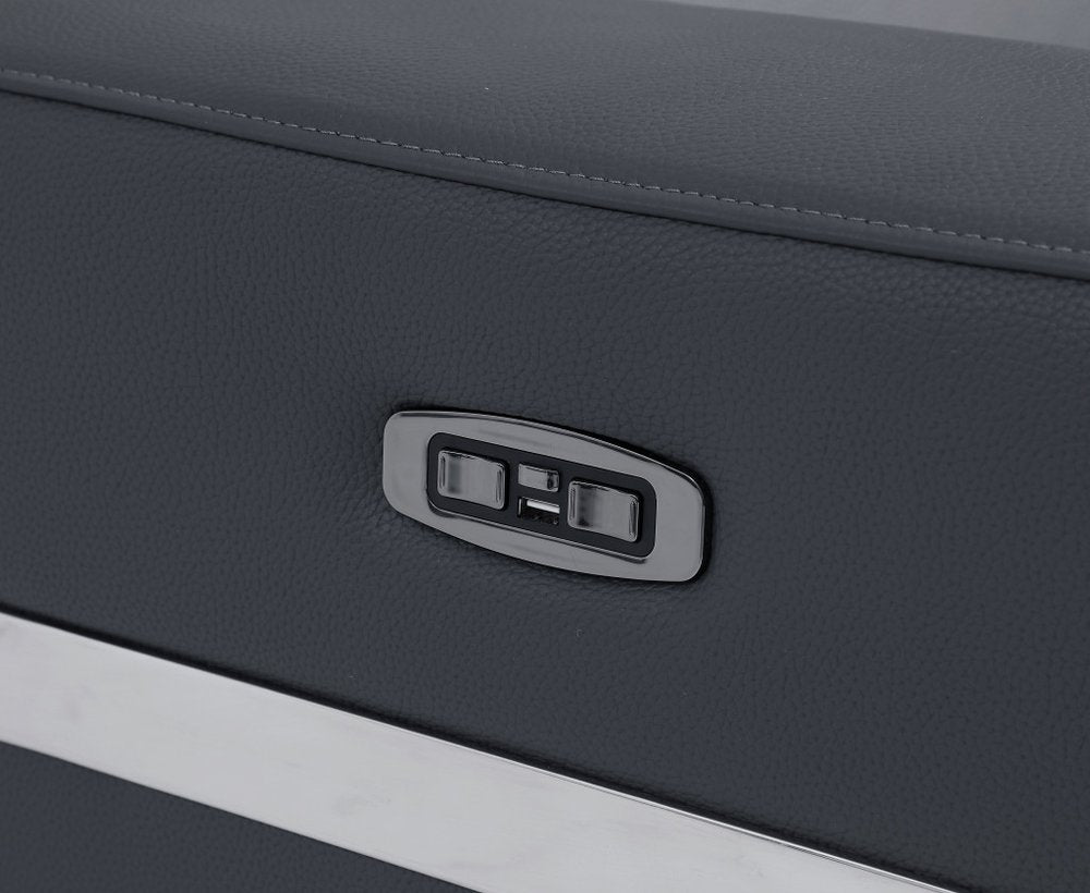 65" Gray And Silver Italian Leather Power Reclining Loveseat