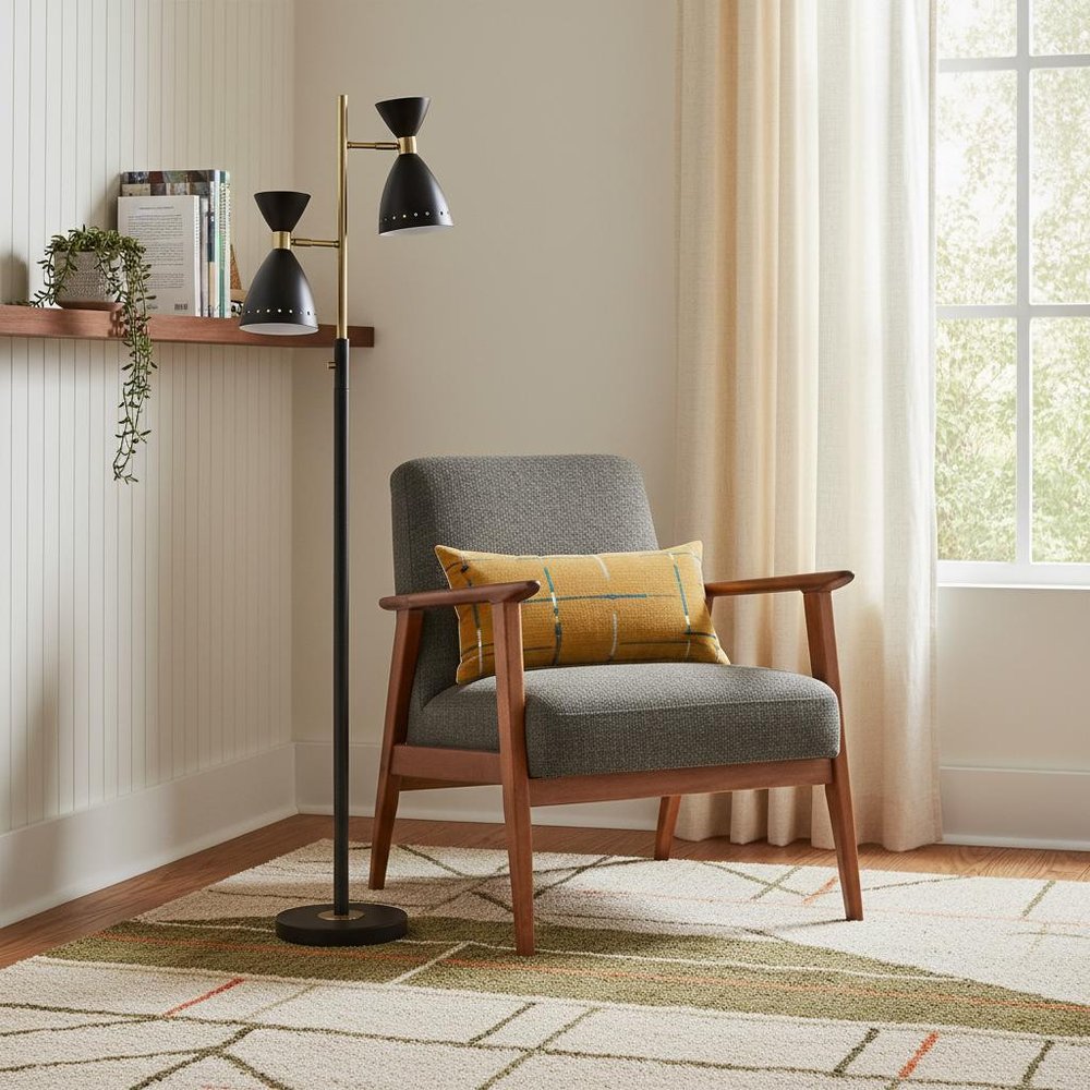 With this 68-inch black and gold metal two light task floor lamp with black metal cone shade you bring design... Read more