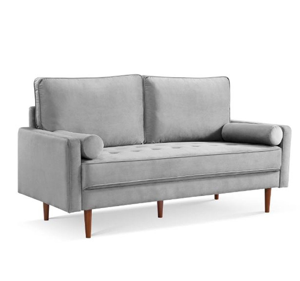 69" Gray Velvet Sofa And Toss Pillows With Dark Brown Legs