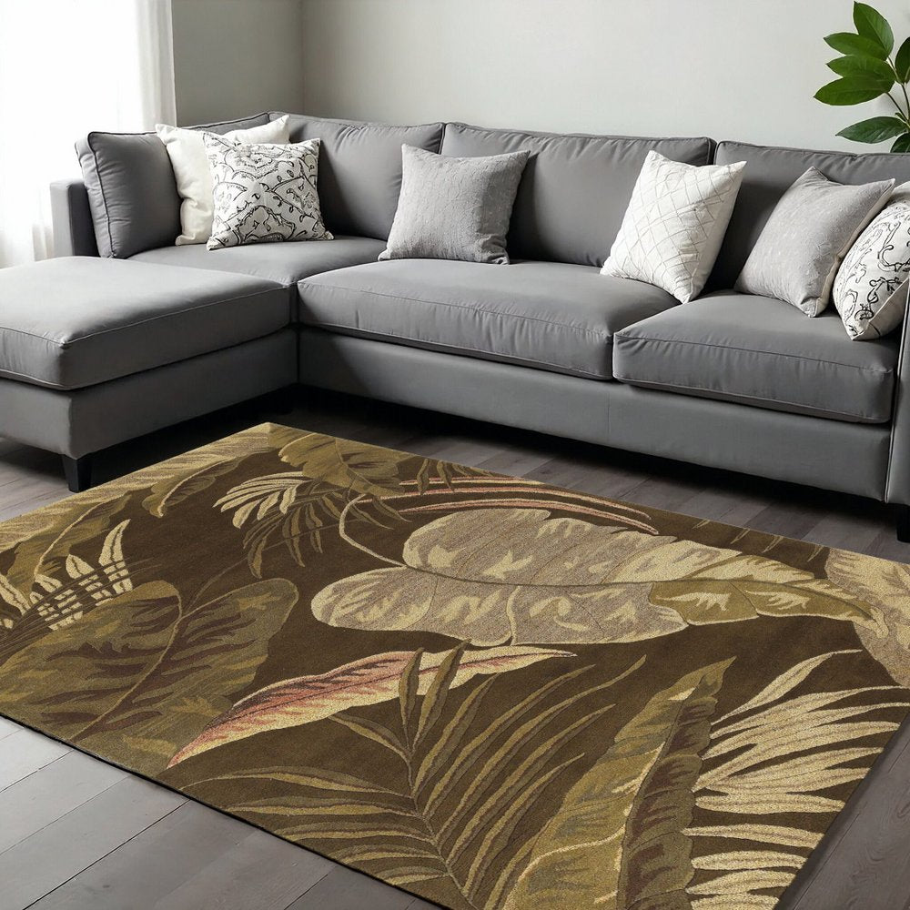 3' X 5' Brown And Beige Wool Botanical Leaves Hand Tufted Area Rug