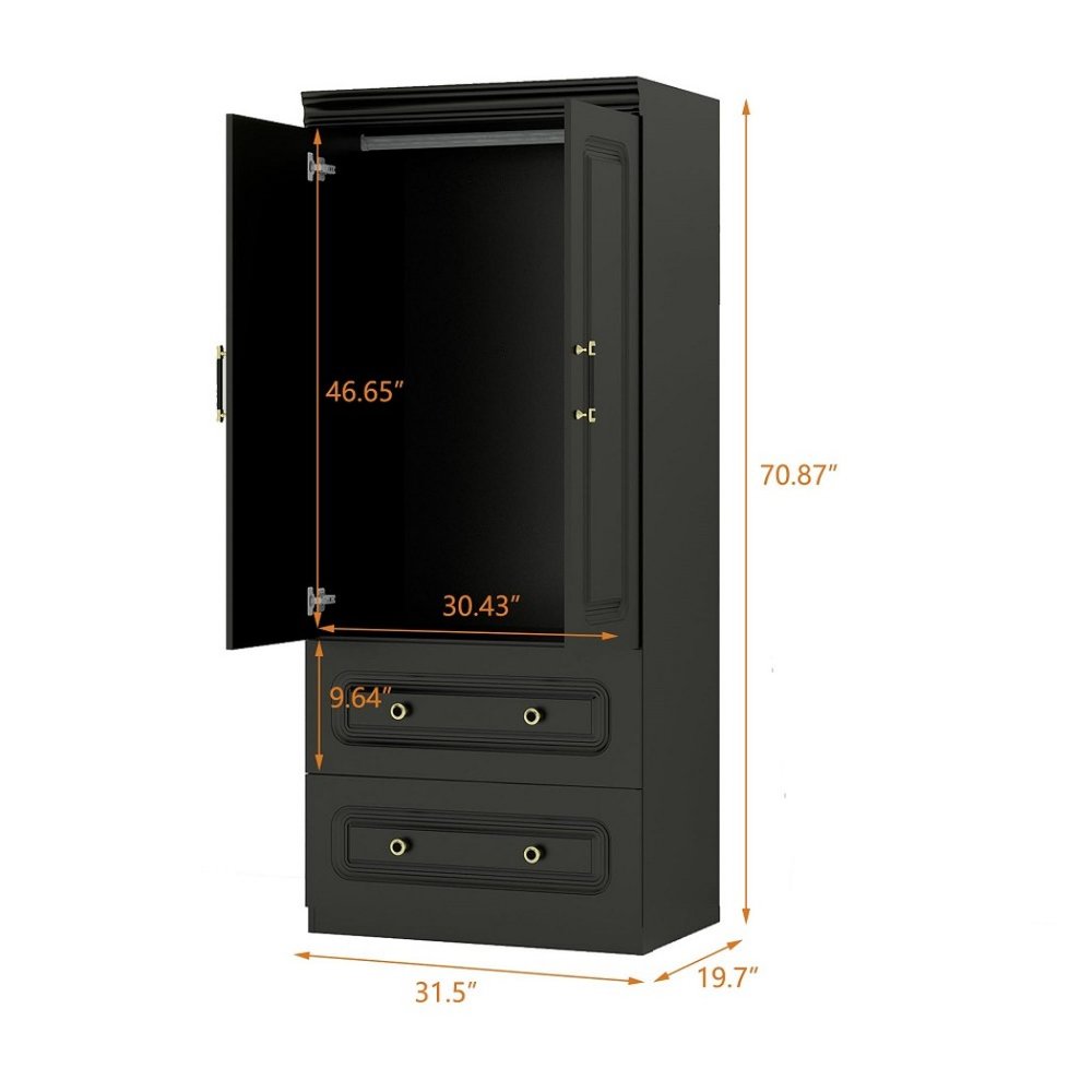 This 71-inch black wood two door two drawer combo dresser is a practical and good looking accent for your bedroom... Read more
