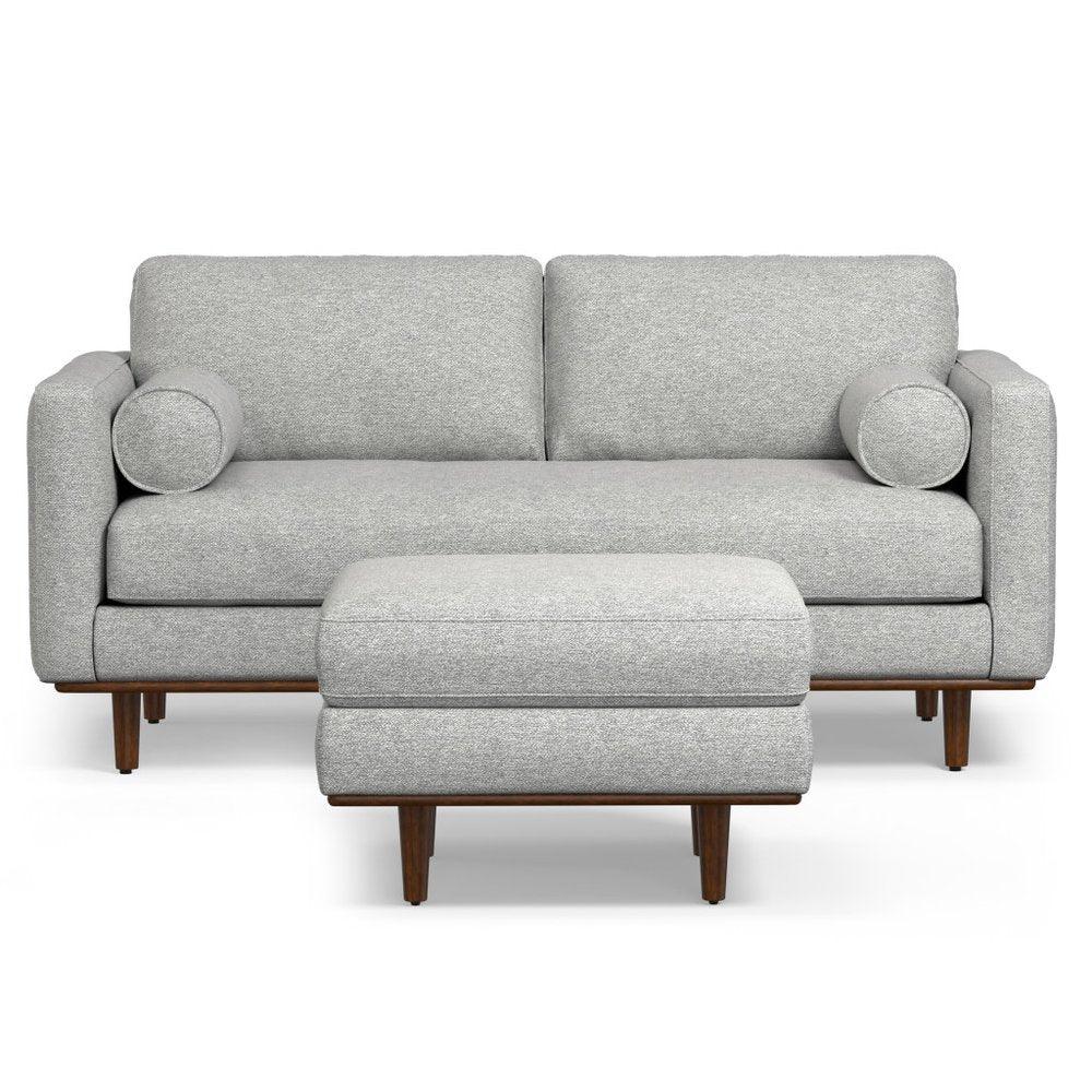 Designed for comfort and good looks, this 72-inch gray fabric sofa with ottoman with brown legs is a great option... Read more