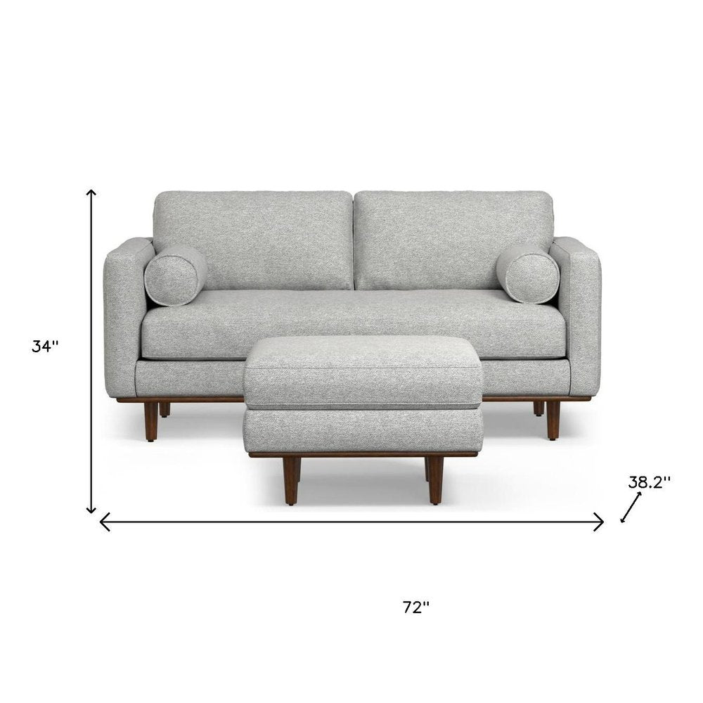 72" Gray Fabric Sofa With Ottoman With Brown Legs