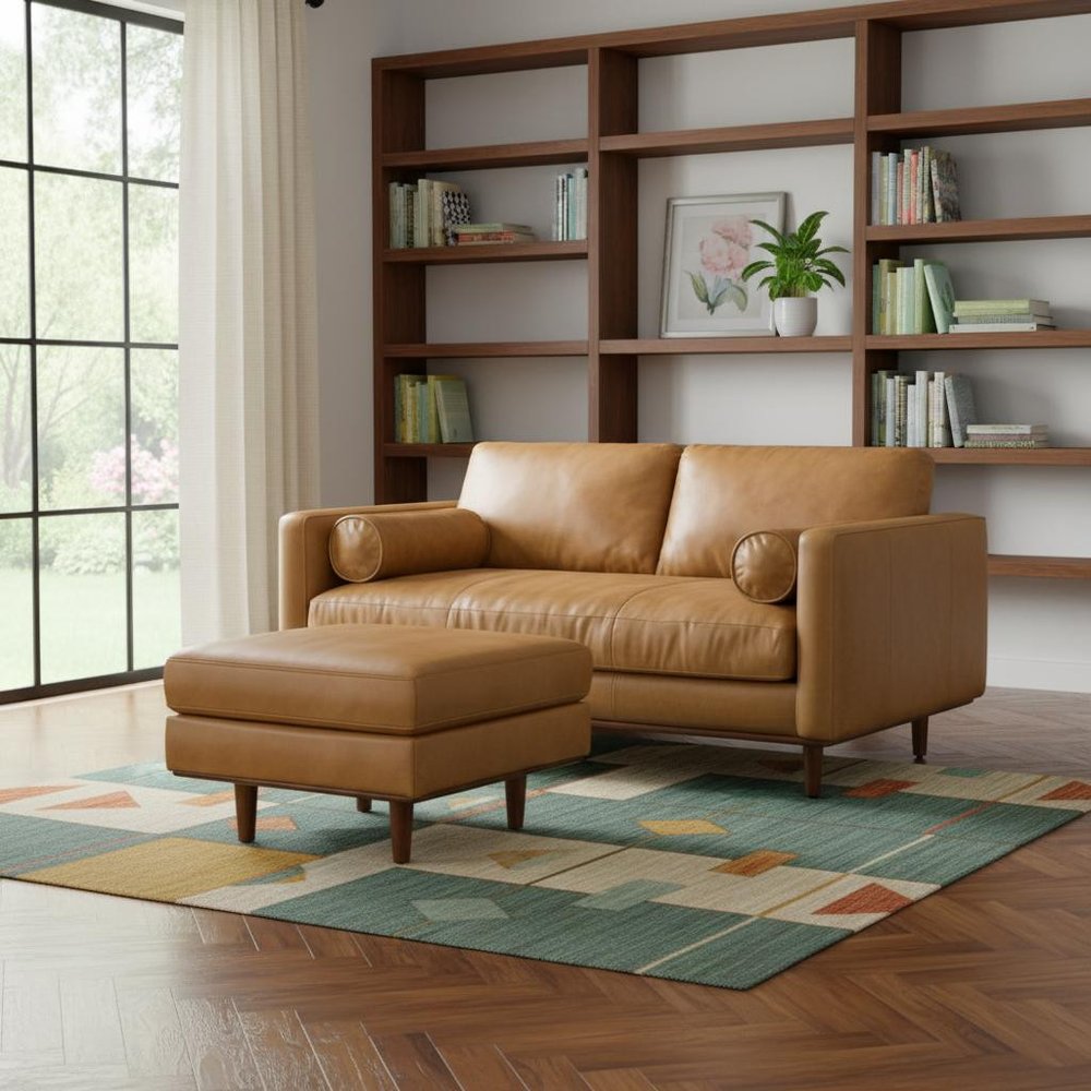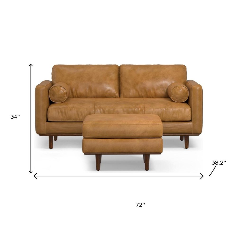 Superior construction from fabulously soft and high grade leather gives this 72-inch sienna leather sofa with ottoman with brown legs... Read more