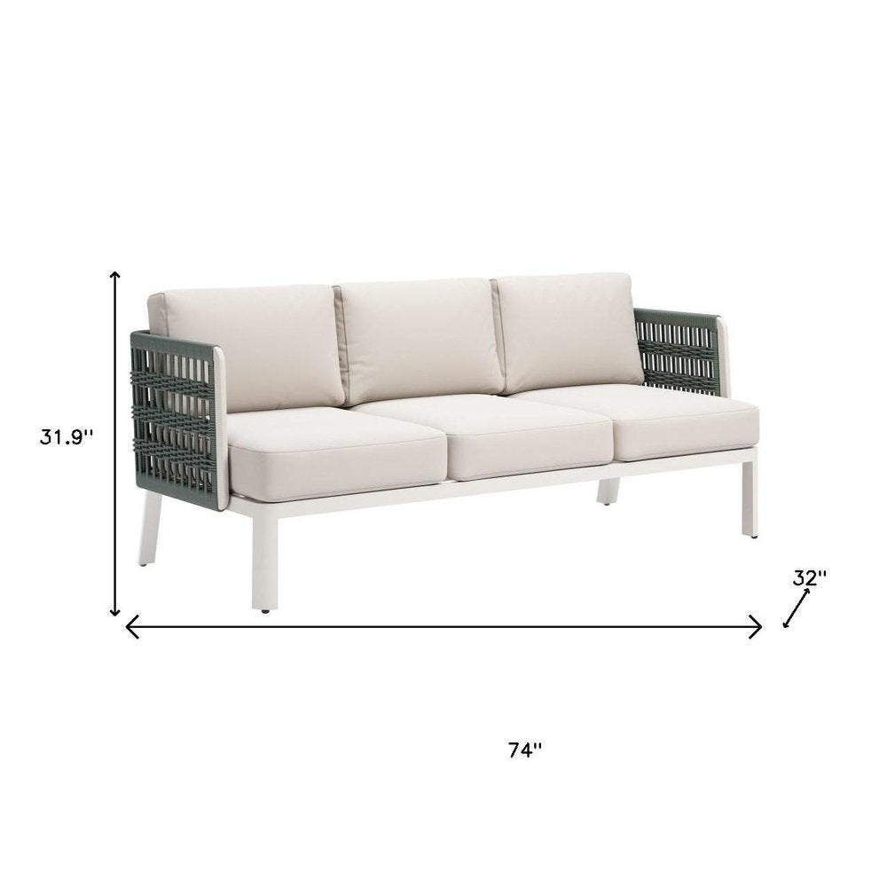 74" White Fabric Sofa