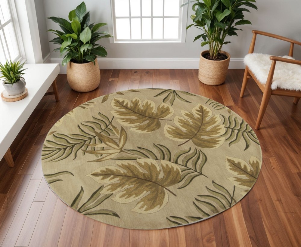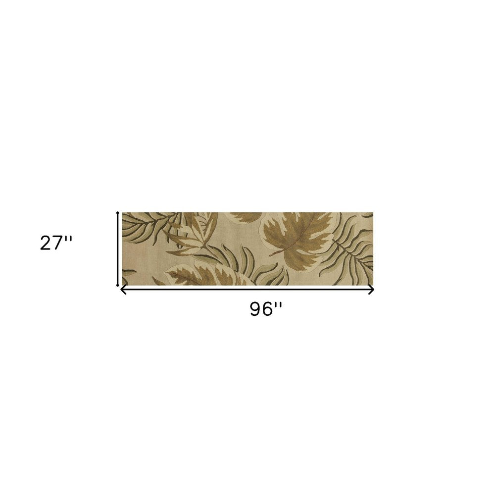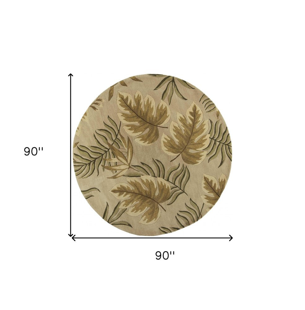 8' X 11' Sand And Beige Wool Botanical Leaves Hand Tufted Area Rug