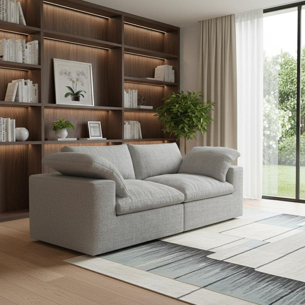 Add an air of fashion to your space with this fabulous 80-inch light gray linen blend modular sofa. Solid colors... Read more