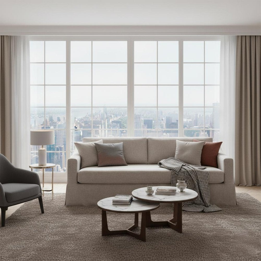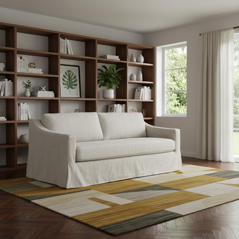 Designed for comfort and good looks, this 85-inch beige fabric solid wood sofa is a great option to anchor your... Read more
