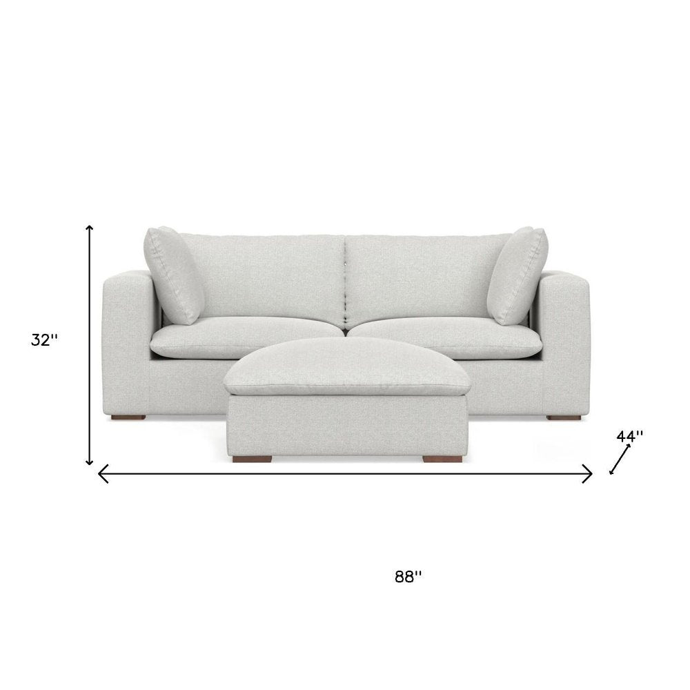 88" Gray Fabric Sofa With Ottoman With Brown Legs
