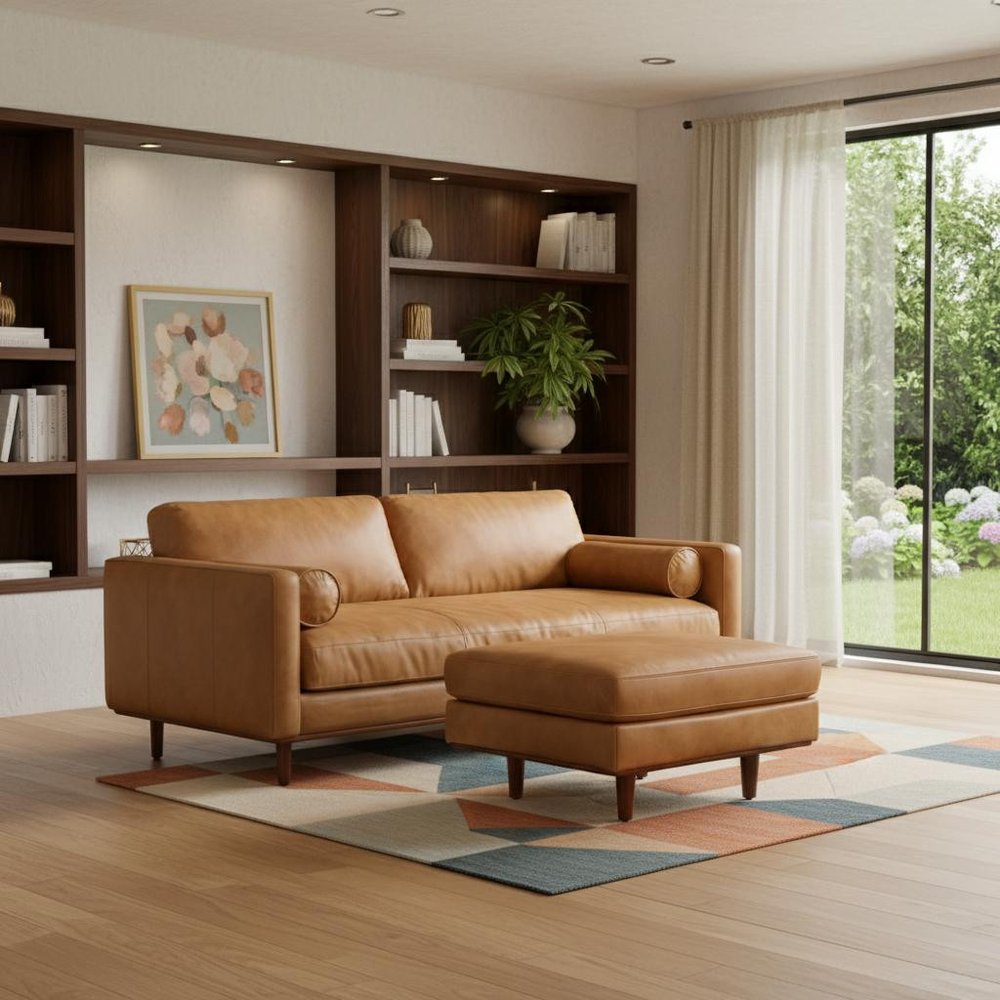 An interior designer's dream, this buttery soft high grade leather 89-inch sienna leather sofa with ottoman with brown legs will... Read more