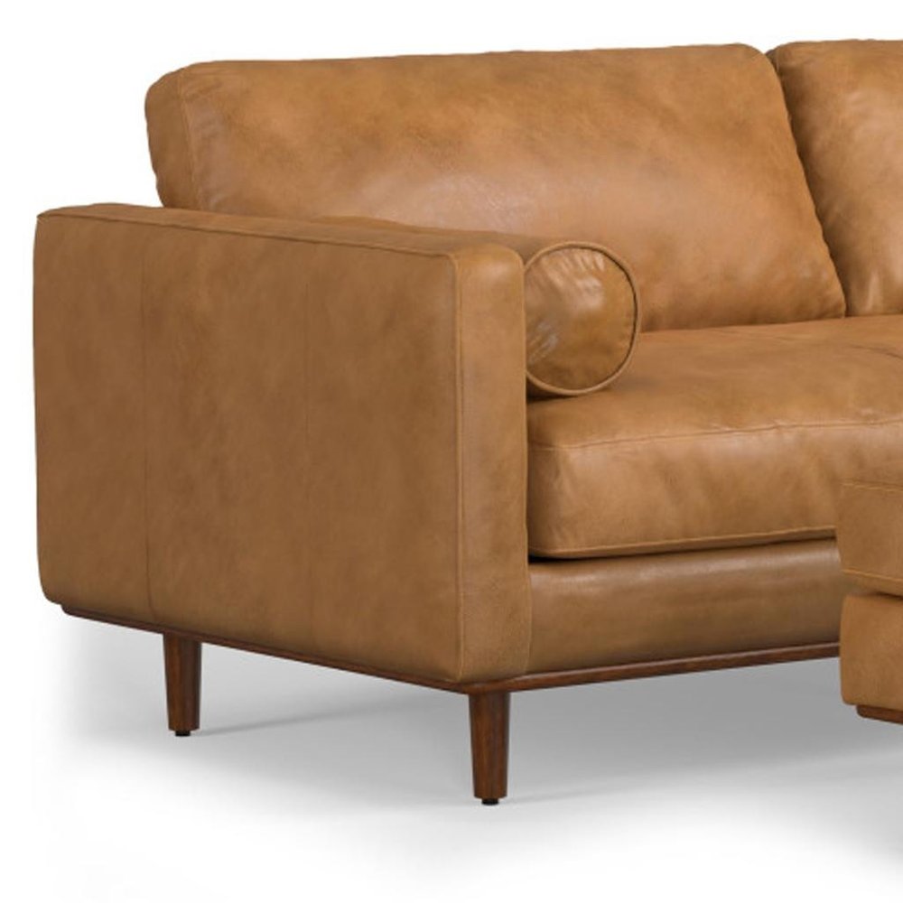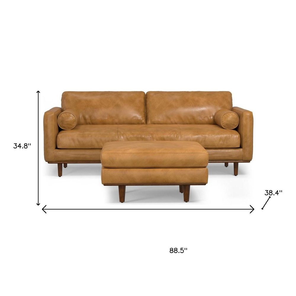 89" Sienna Leather Sofa With Ottoman With Brown Legs