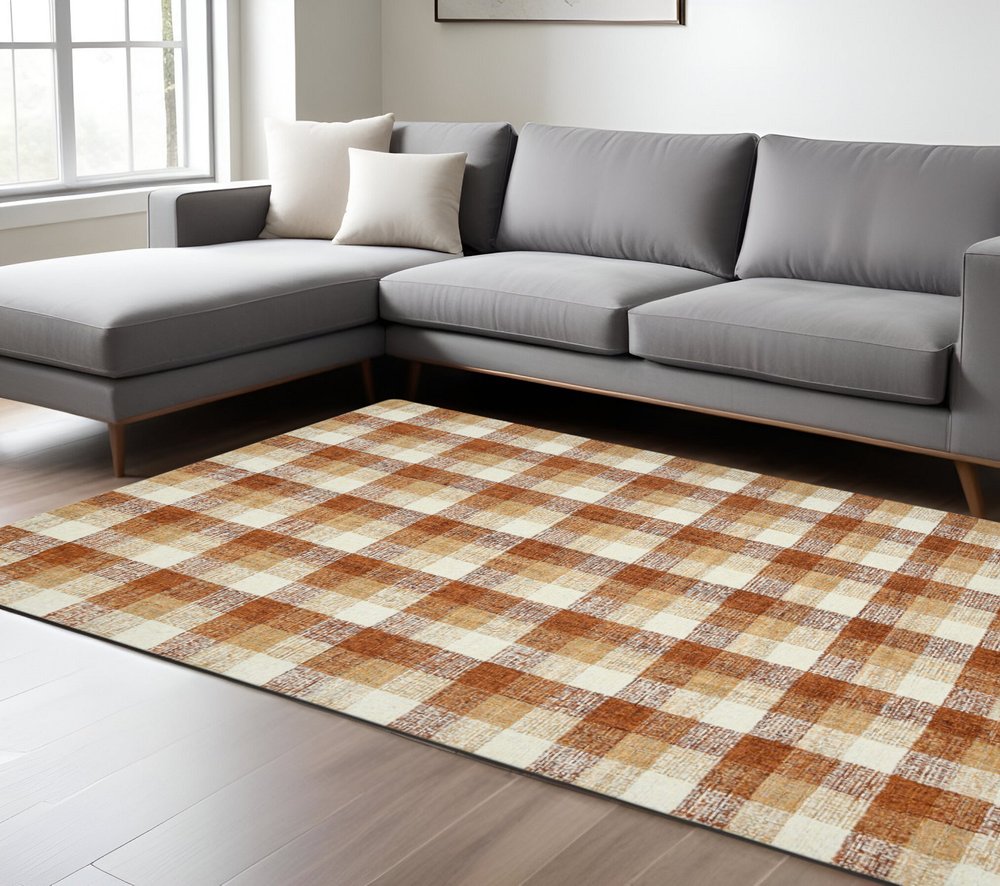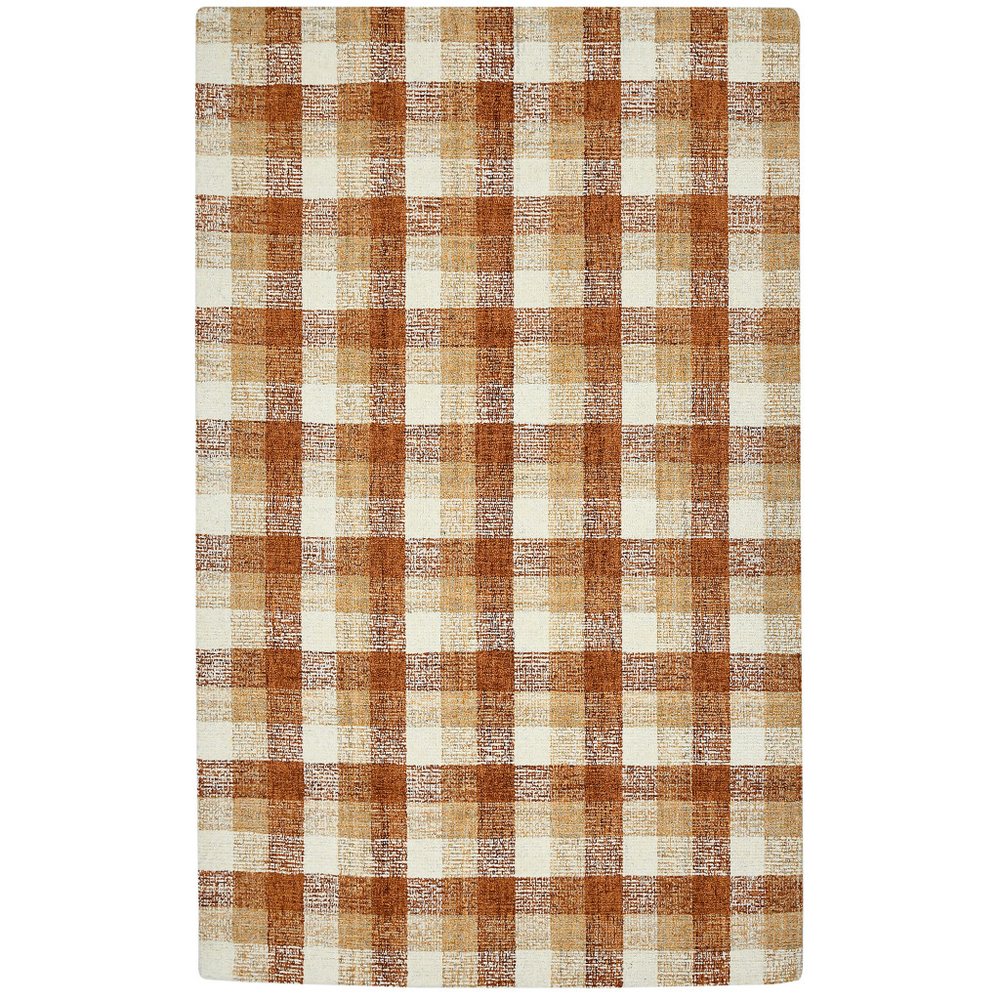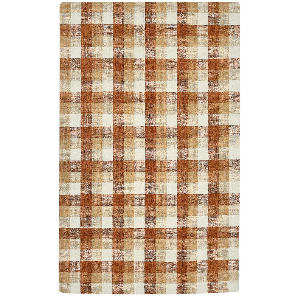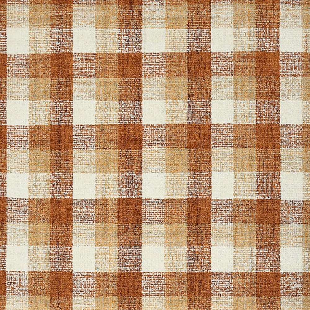 9' X 13' Orange Beige And Brick Red Wool Plaid Hand Tufted Area Rug