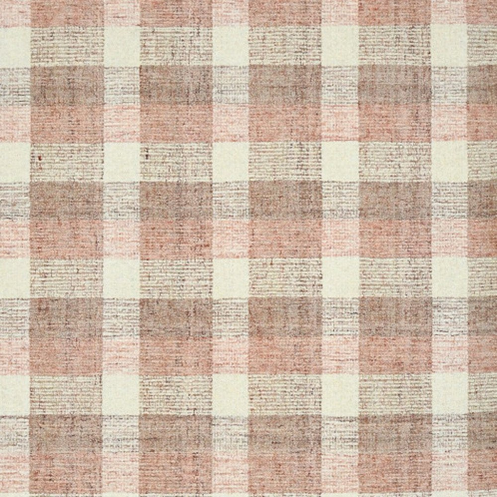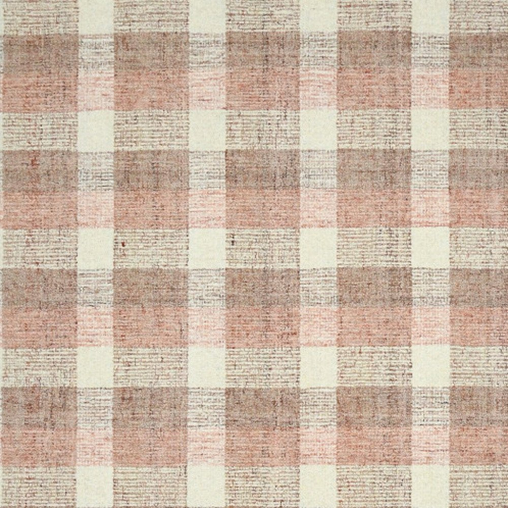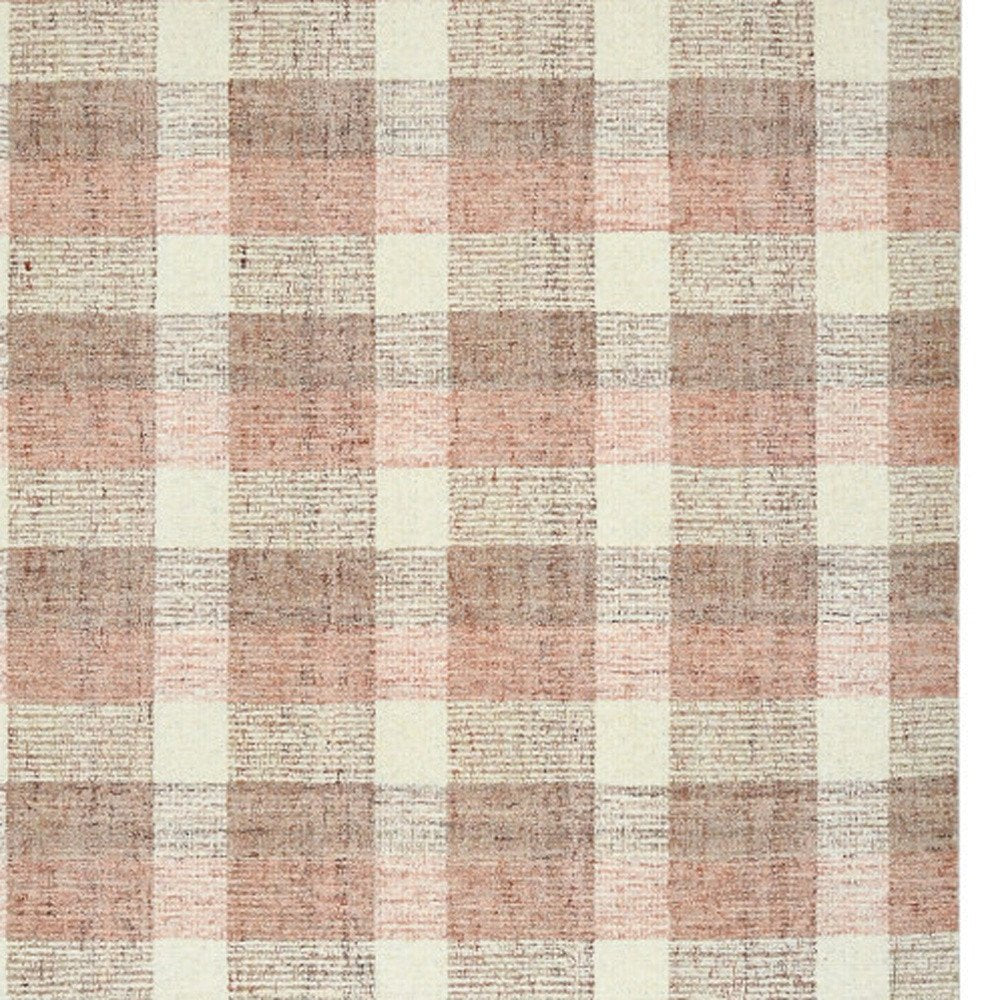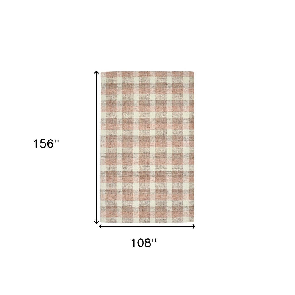 9' X 13' Pink And Ivory Wool Plaid Hand Tufted Area Rug
