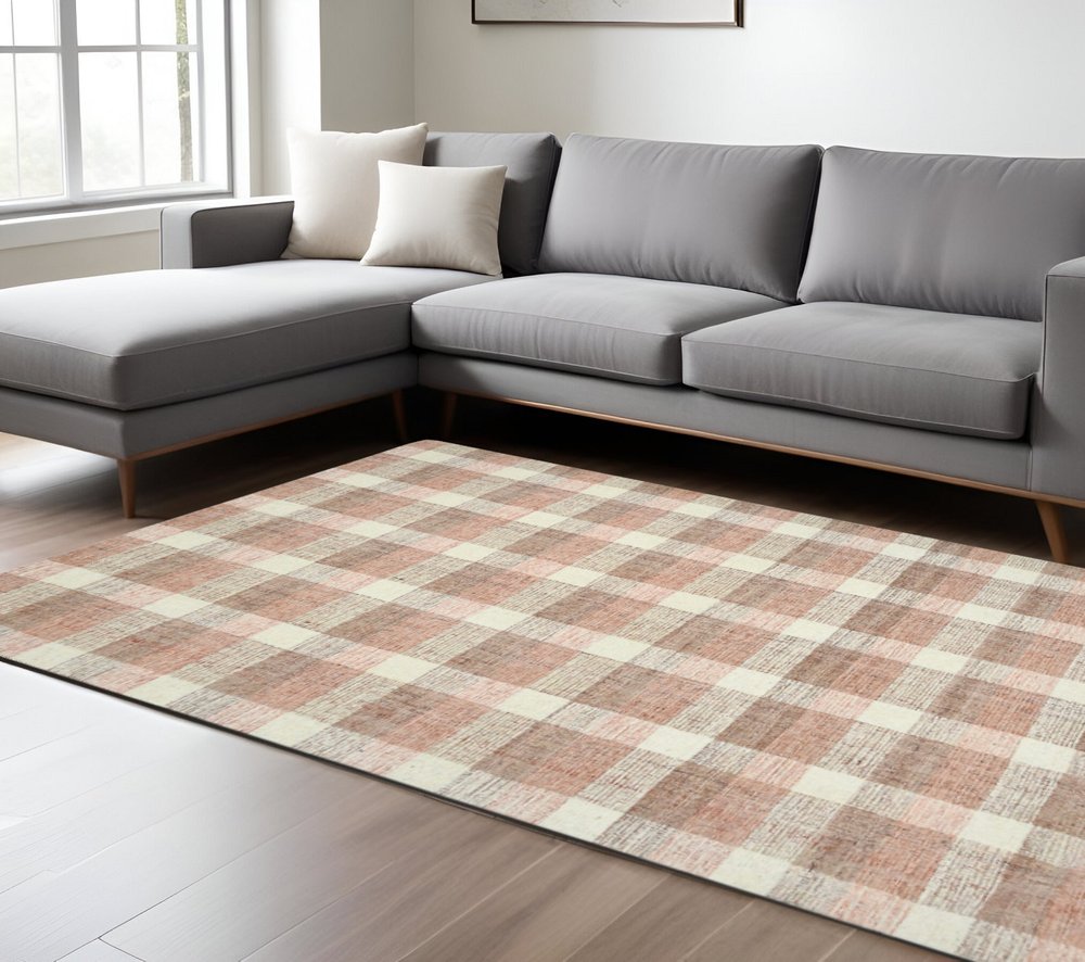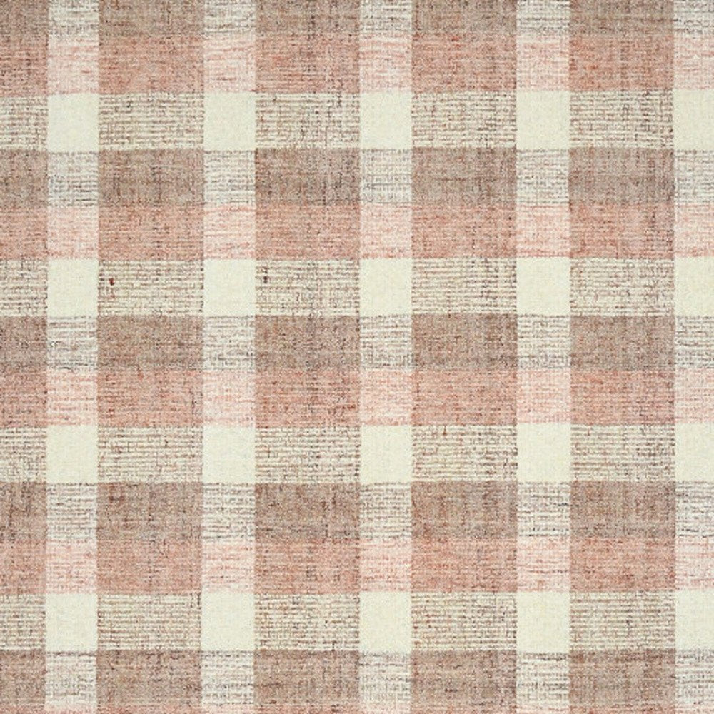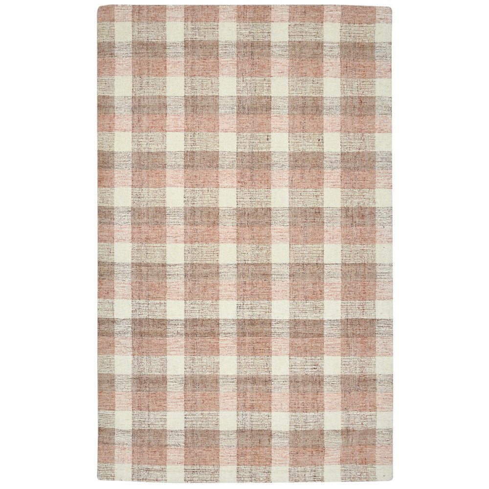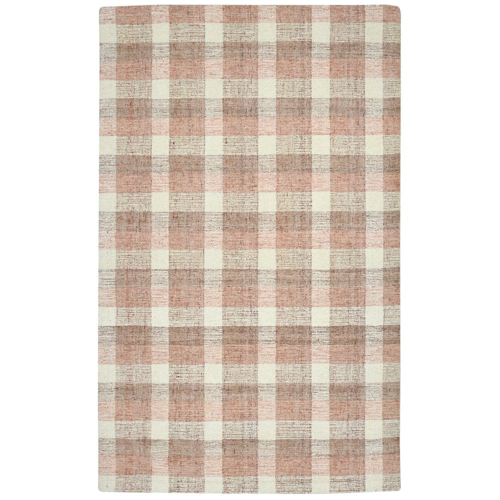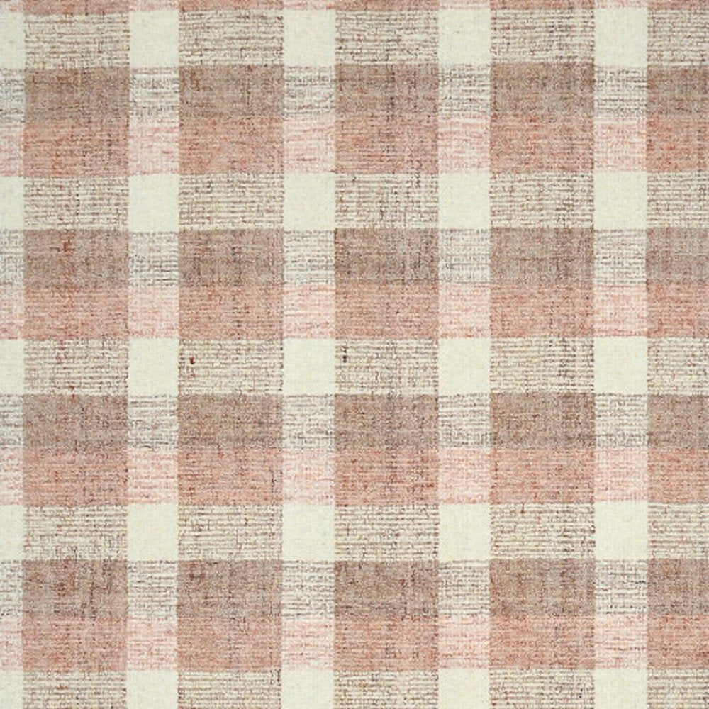 9' X 13' Pink And Ivory Wool Plaid Hand Tufted Area Rug