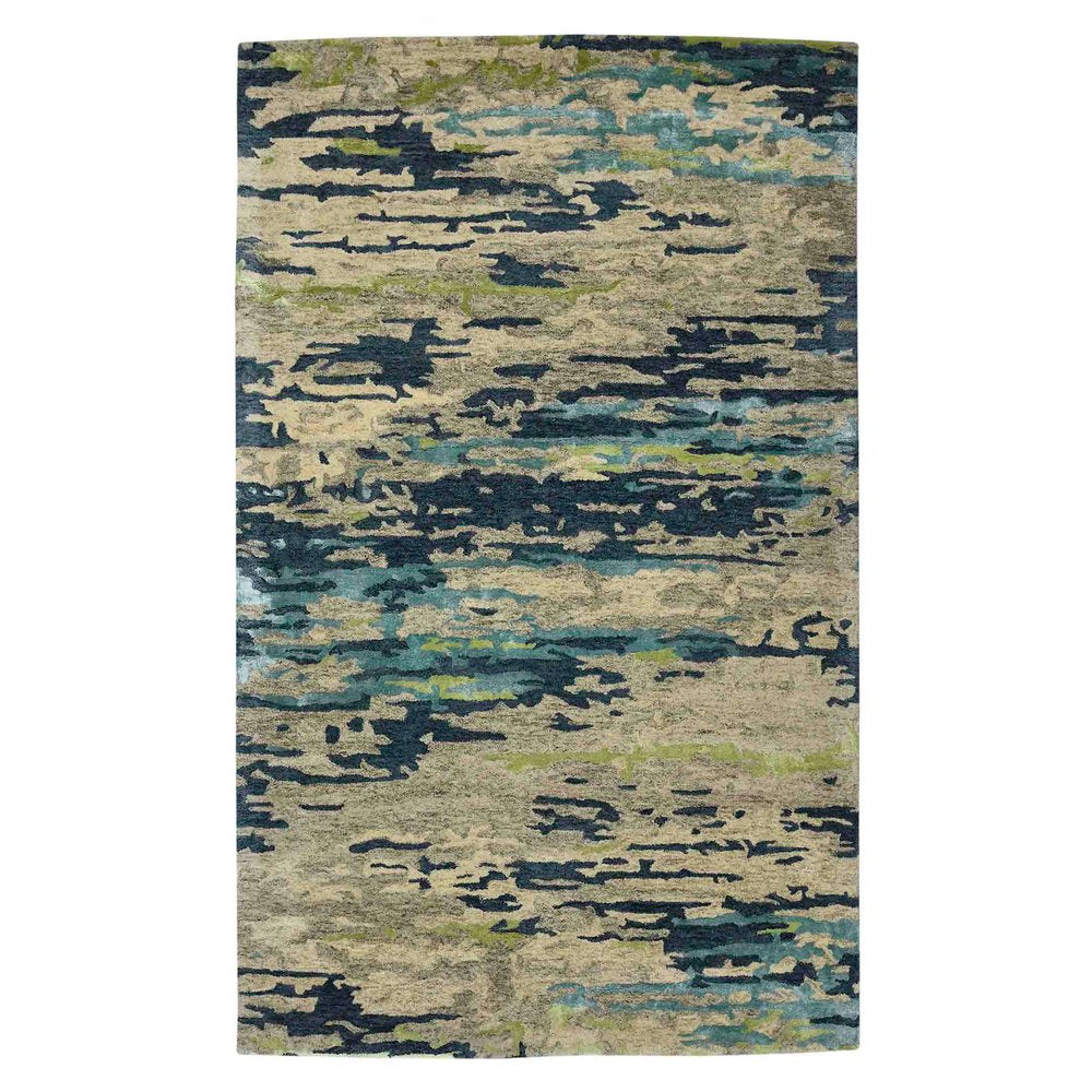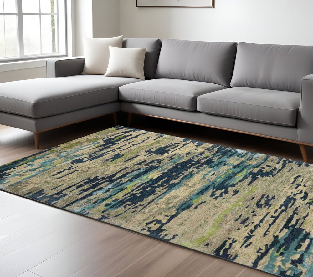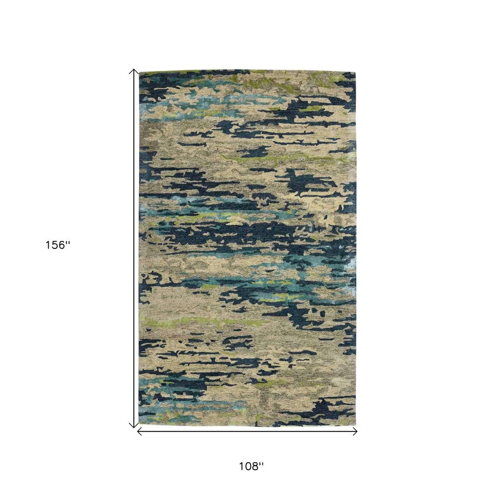 9' X 13' Sand And Green Wool Abstract Hand Tufted Area Rug
