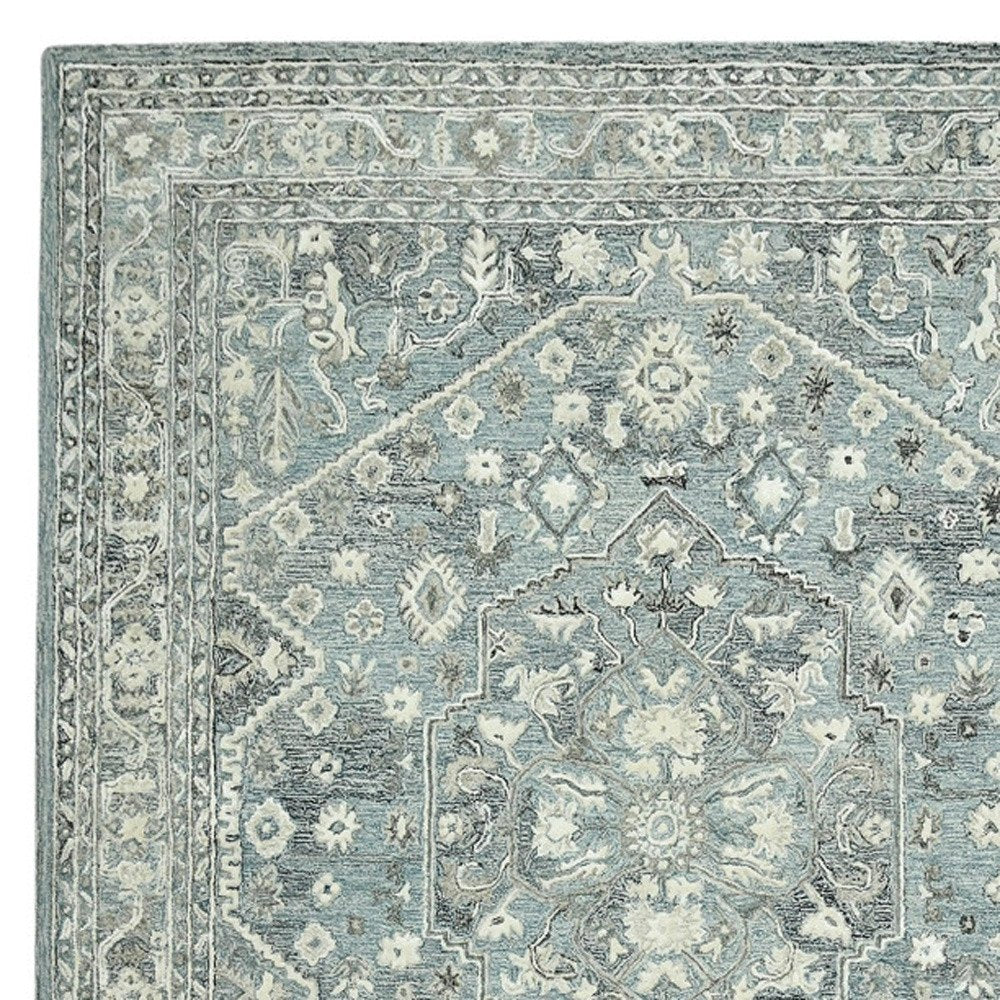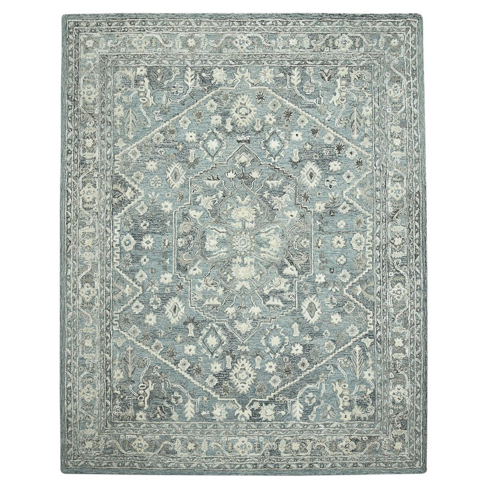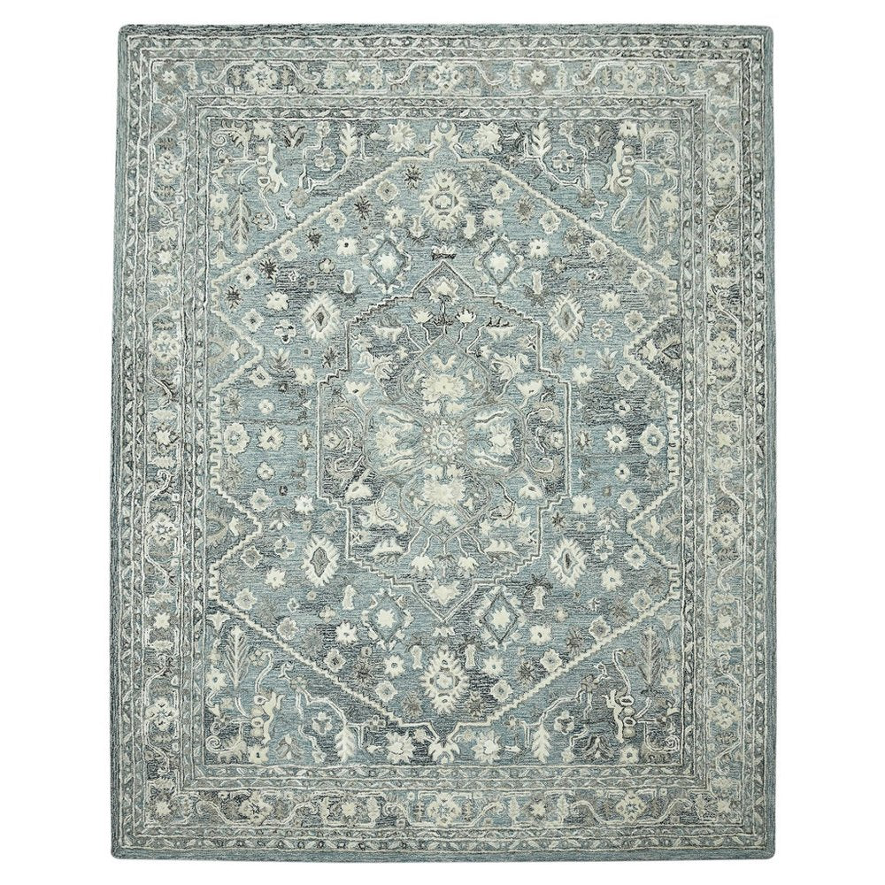 Add great coloration and comfortable texture to your space with this 9-foot x 13-foot sky blue gray and ivory wool... Read more