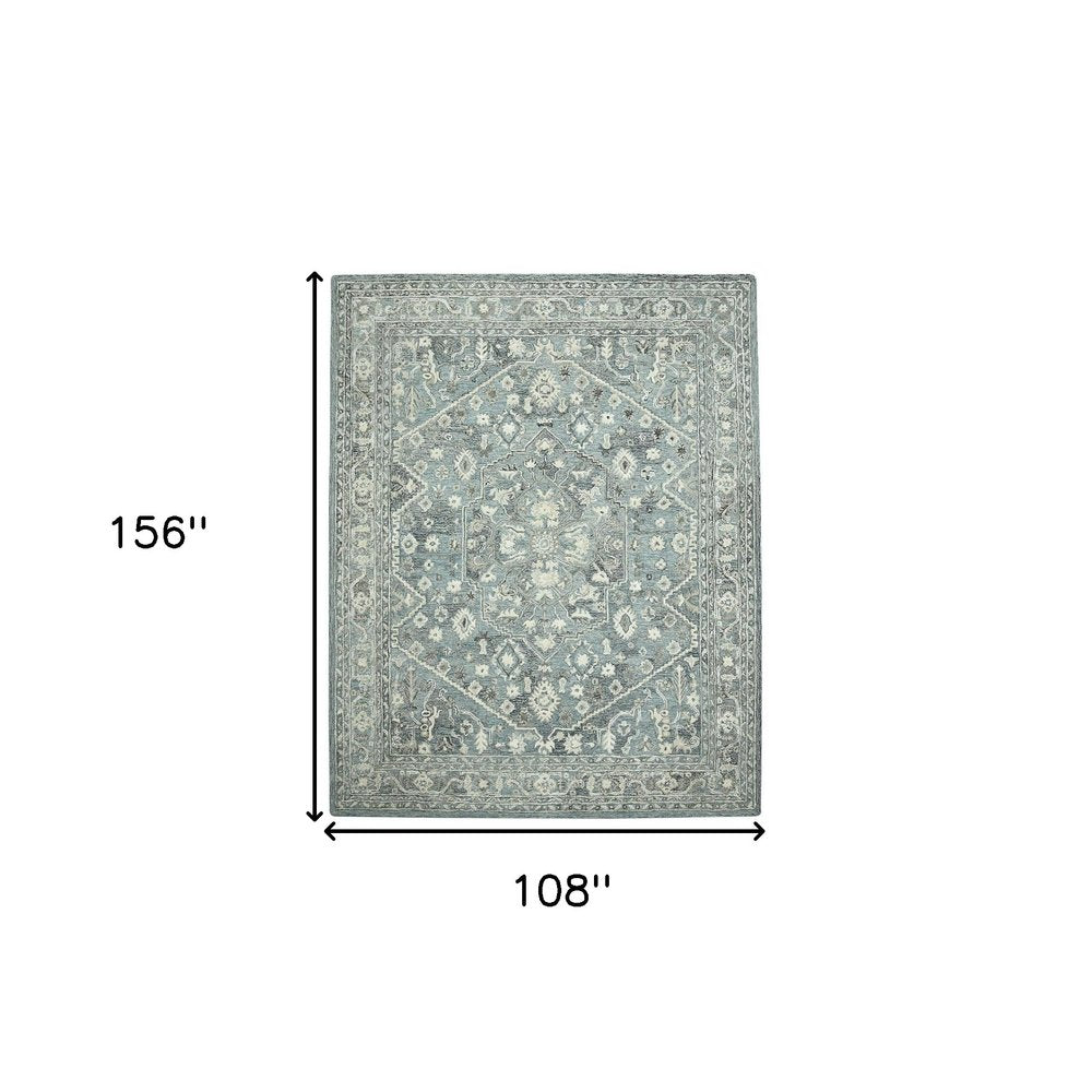 9' X 13' Sky Blue Gray And Ivory Wool Oriental Hand Tufted Area Rug