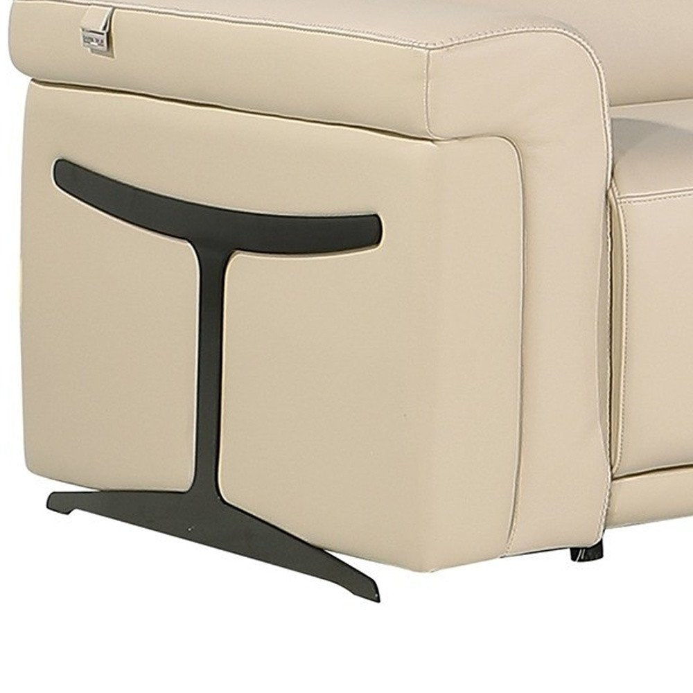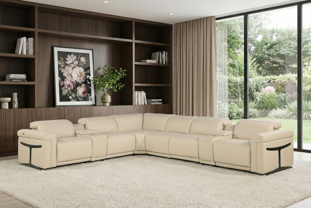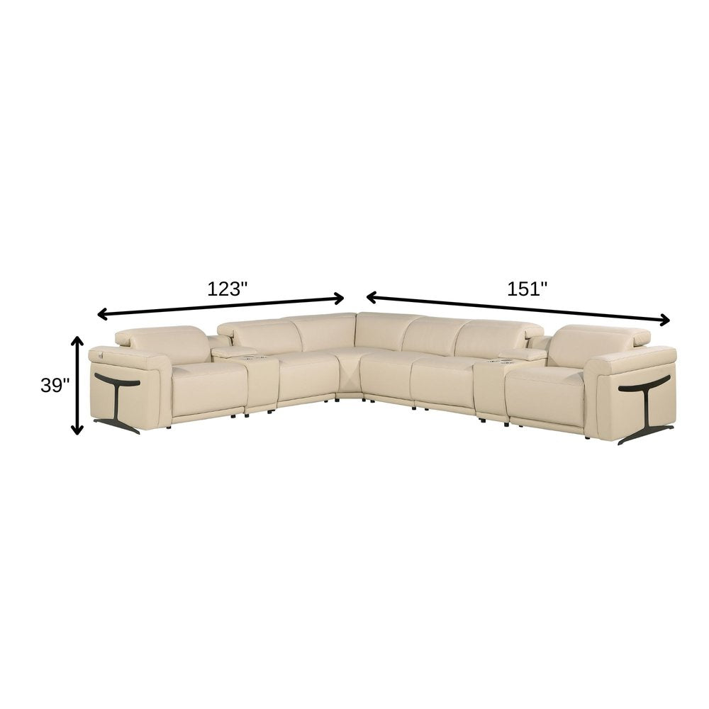 Beige Italian Leather Modular L Shaped Eight Piece Corner Sectional With Console